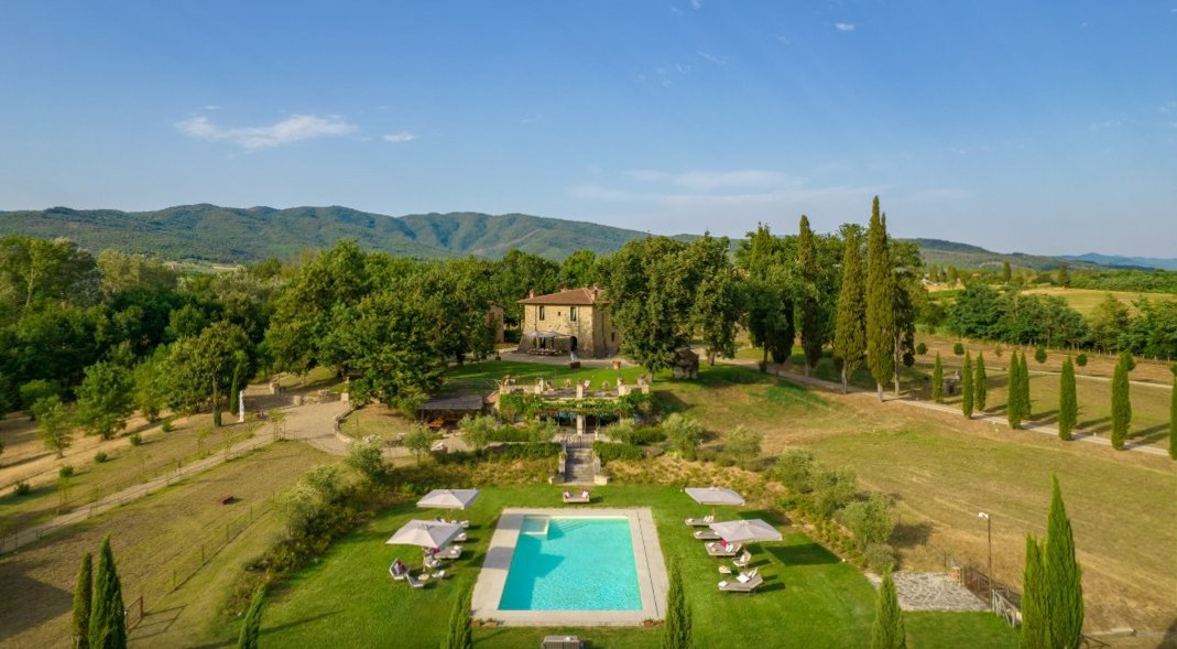 Ikke langt fra Arezzo ligger denne bygningskompleks fra det 15. århundrede: Oprindeligt et vagttårn, i dag netop det, der gør Toscana så elsket. Med stor kreativitet og engagement er der skabt et landligt tilflugtssted på 9 hektar jord med panorama swimmingpool og flere gæstelejligheder.