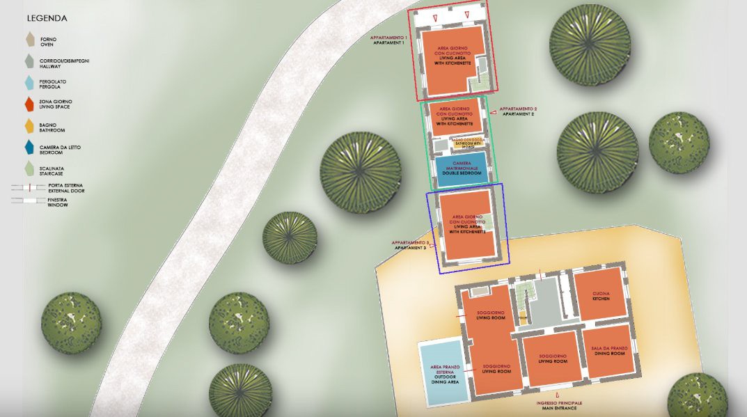 Direkte tilgrænsende til grunden ligger en økologisk vingård med produktion af vin, grappa og olivenolie samt smagsprøver.