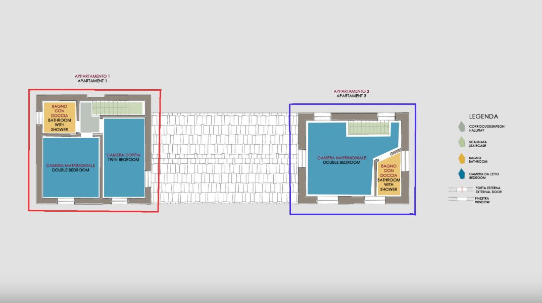 En separat bygning på 190 m² med tre selvstændige lejligheder, hver med køkken, stue og flere soveværelser – ideelt til gæster eller udlejning.