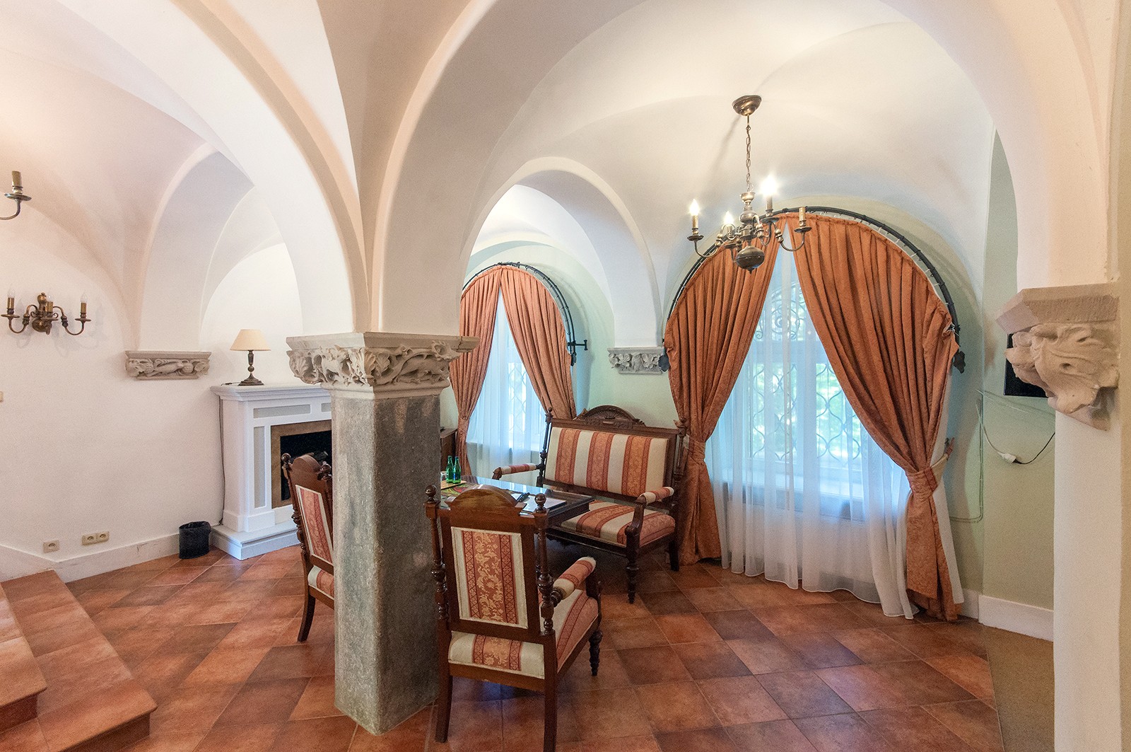 • Danzigsal med originalt møblement fra omkring 1900 og tilstødende rundsal med byzantinske guldbesatte mosaikker