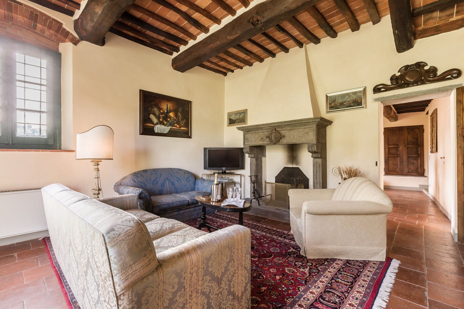 Ejendommen består af to smukke villaer på i alt over 1000 m², beliggende i en 7 hektar stor park med græsplæner, skov og oliventræer. Beliggenheden er rolig og har en panoramisk udsigt, samtidig med at de vigtigste byer som Firenze, Lucca og Pisa er nemt tilgængelige både i bil og med offentlig transport.
