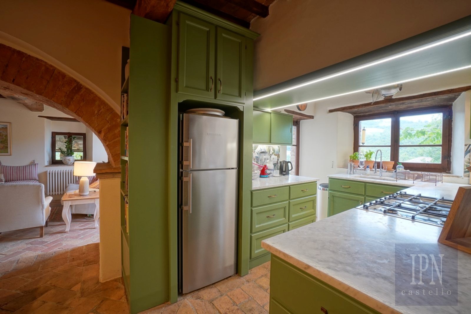På en bakkeskråning i kommunen Monte Santa Maria Tiberina i Tiberdalen ligger dette afsides beliggende hus Vista Tiberina med et boligareal på 388 m². Ejendommen rummer 6 soveværelser, 5 badeværelser og en tidligere lade på 60 m², som i øjeblikket anvendes som atelier. Der hører 2,5 hektar jord til ejendommen med en 10 x 5 meter swimmingpool med solvarmesystem.
