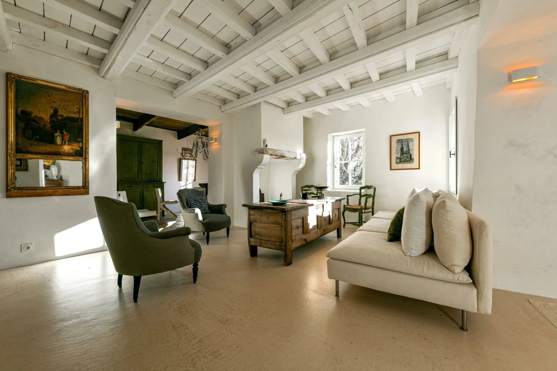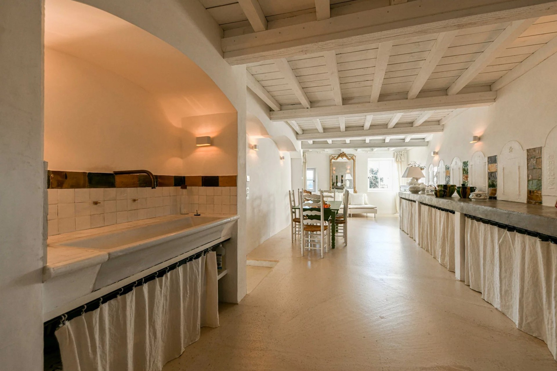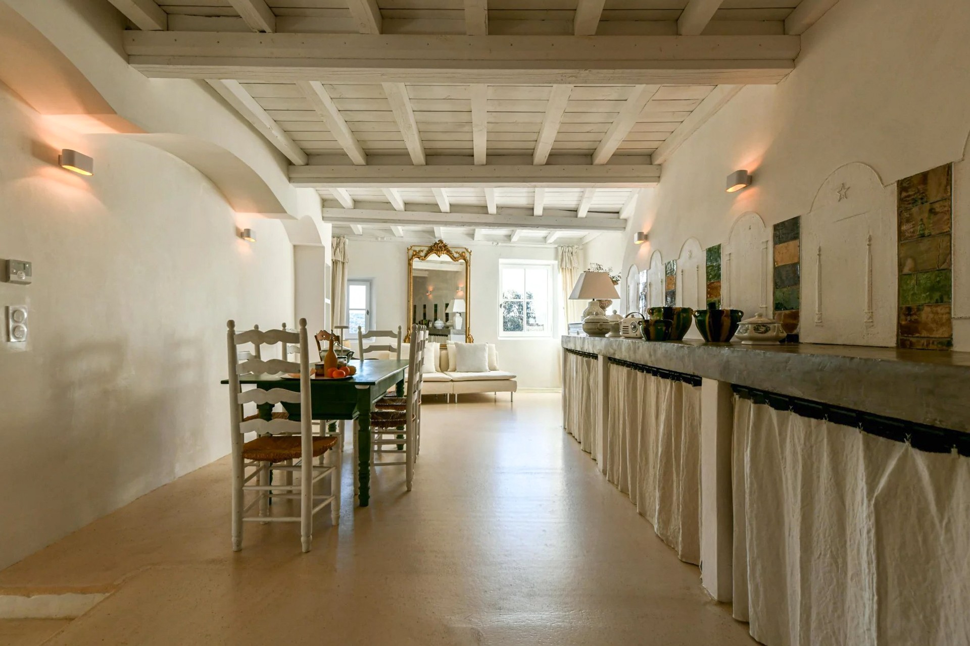 De oprindelige arkitektoniske elementer såsom synlige træbjælker og antikke terrakottagulve er bevaret under renoveringen. Ejendommen er udstyret med central klimaanlæg.