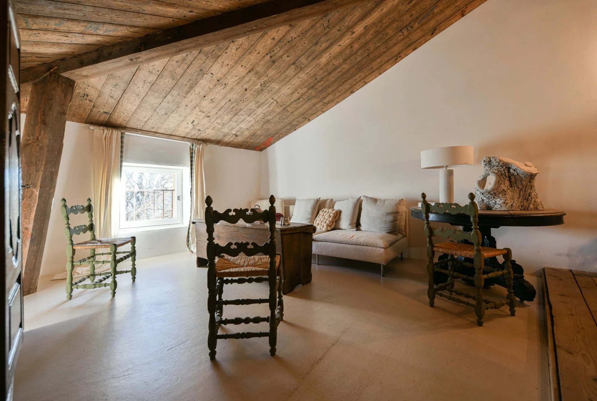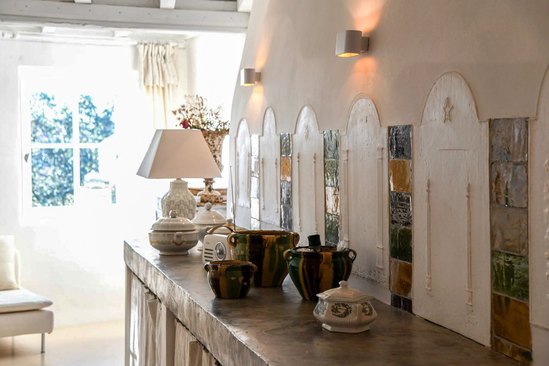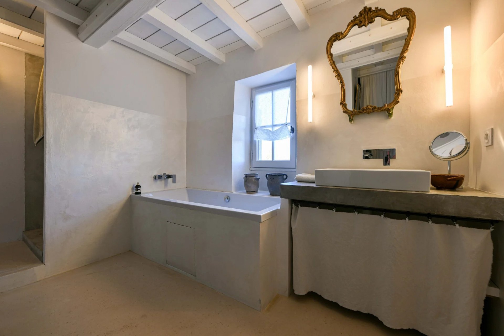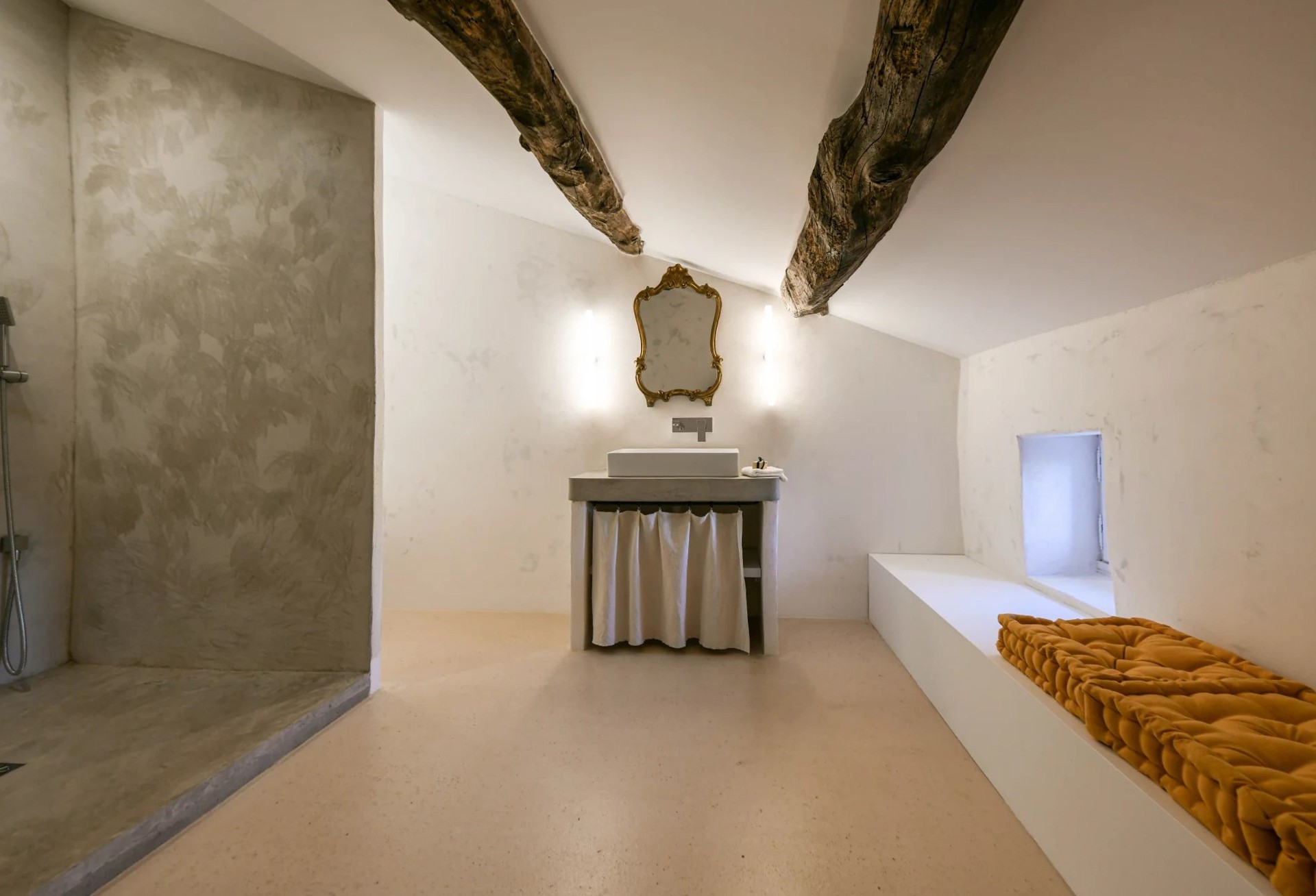 De oprindelige arkitektoniske elementer såsom synlige træbjælker og antikke terrakottagulve er bevaret under renoveringen. Ejendommen er udstyret med central klimaanlæg.