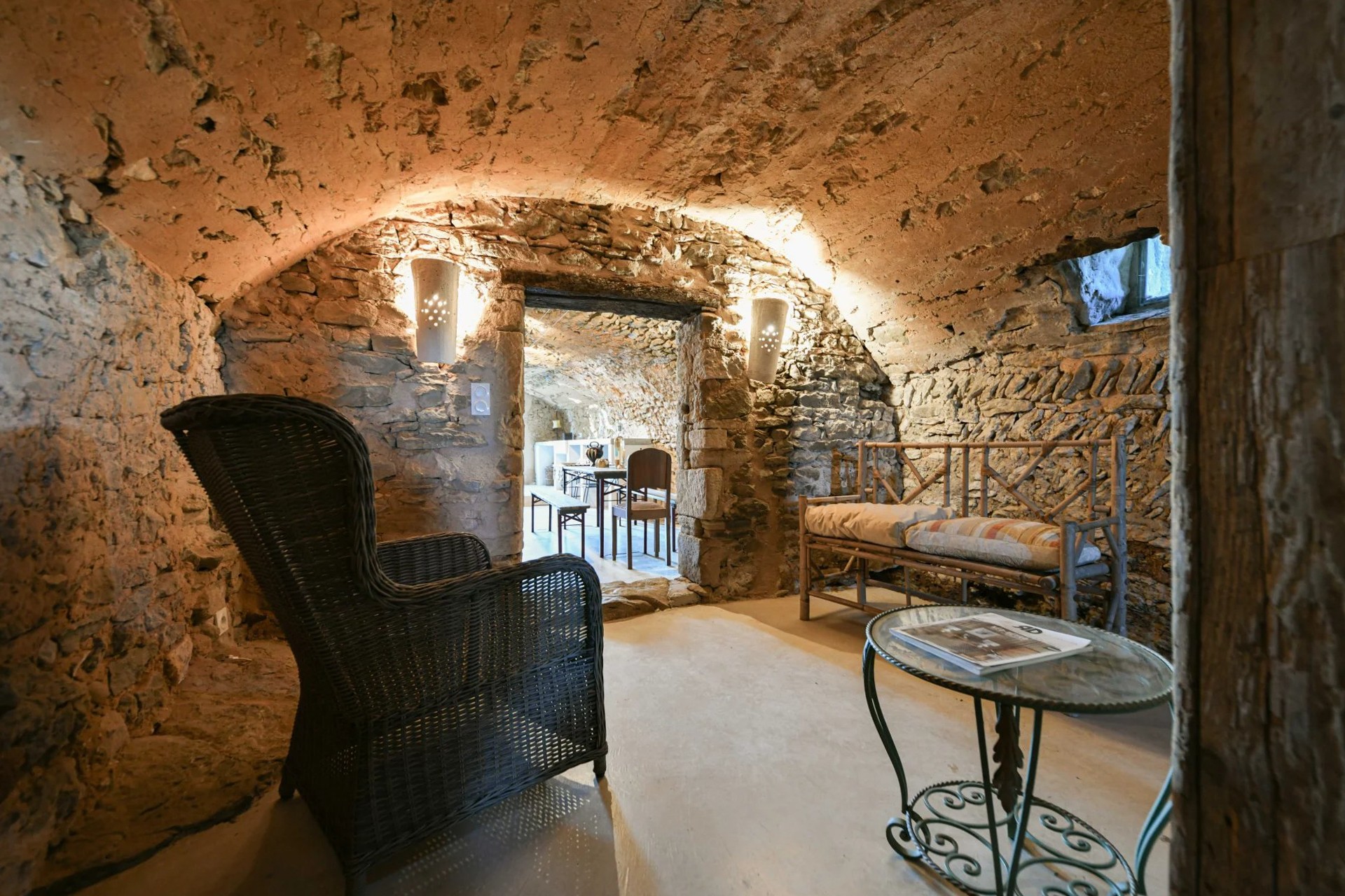 Stueetagen er tilgængelig både via en intern trappe og direkte fra haven gennem separate indgange. Ud over et yderligere soveværelse med badeværelse byder dette niveau på originale hvælvede repræsentationsrum, spiseområde samt et sommerkøkken med direkte adgang til parken og poolen.