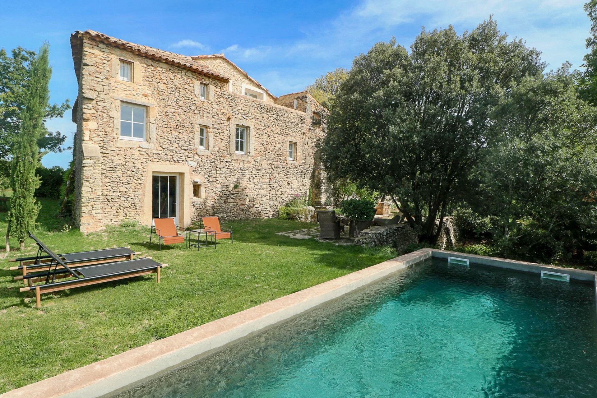 Beliggende midt i et uspoleret naturlandskab, i fuldstændig ro og privathed på landet og samtidig i umiddelbar nærhed af landsbyens centrum, tilbyder denne autentiske provencalske mas følgende faciliteter:
