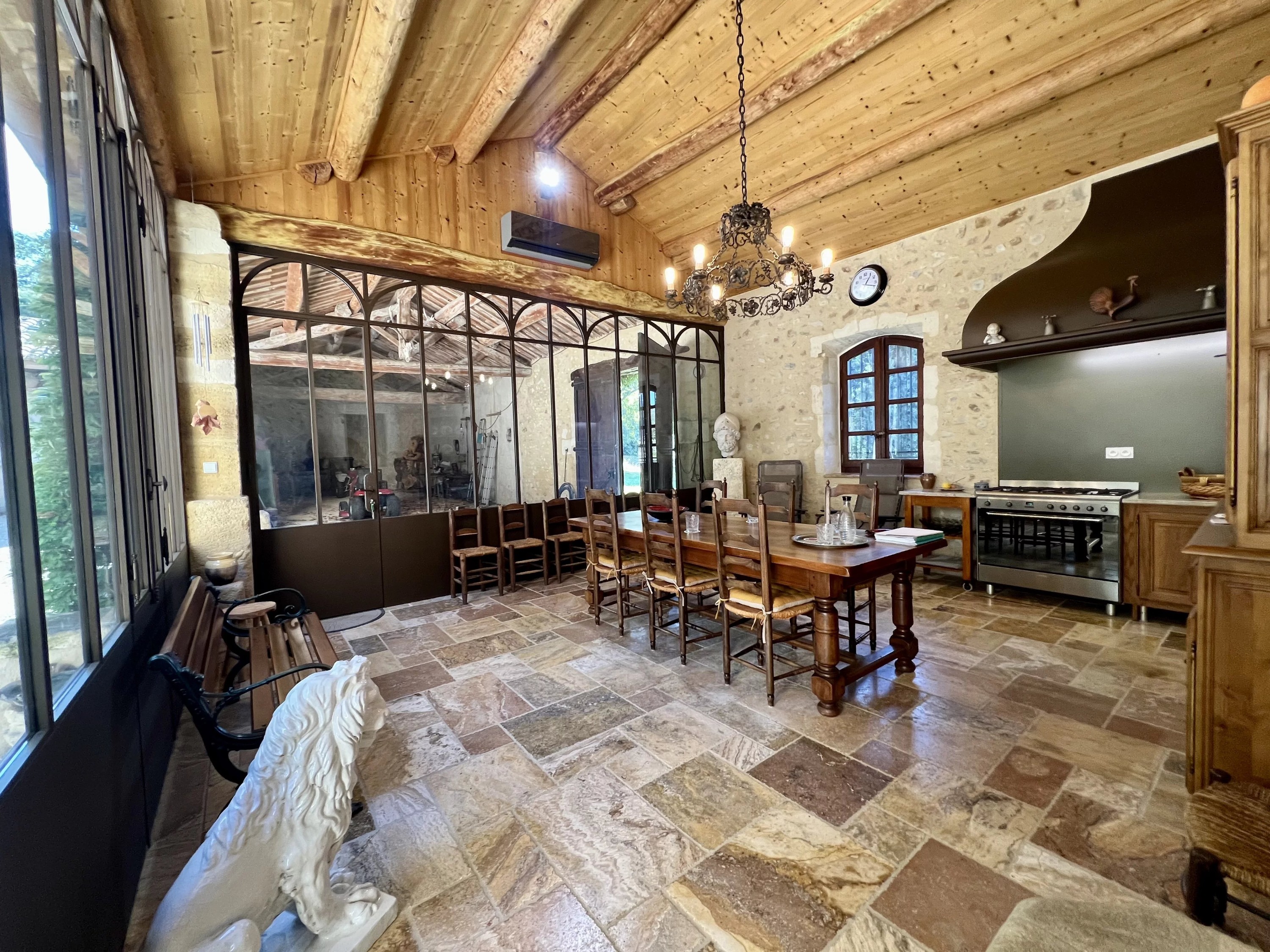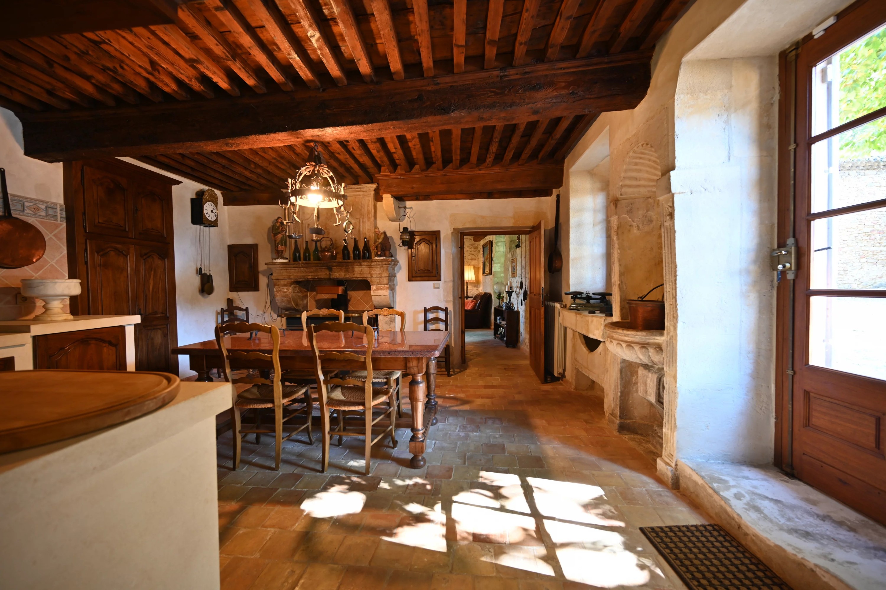 - Tre køkkener: et køkken med glasfront mod gårdspladsen, et køkken i Louis XIV-stil med brændeovn og stenkølerum samt et servicekøkken.