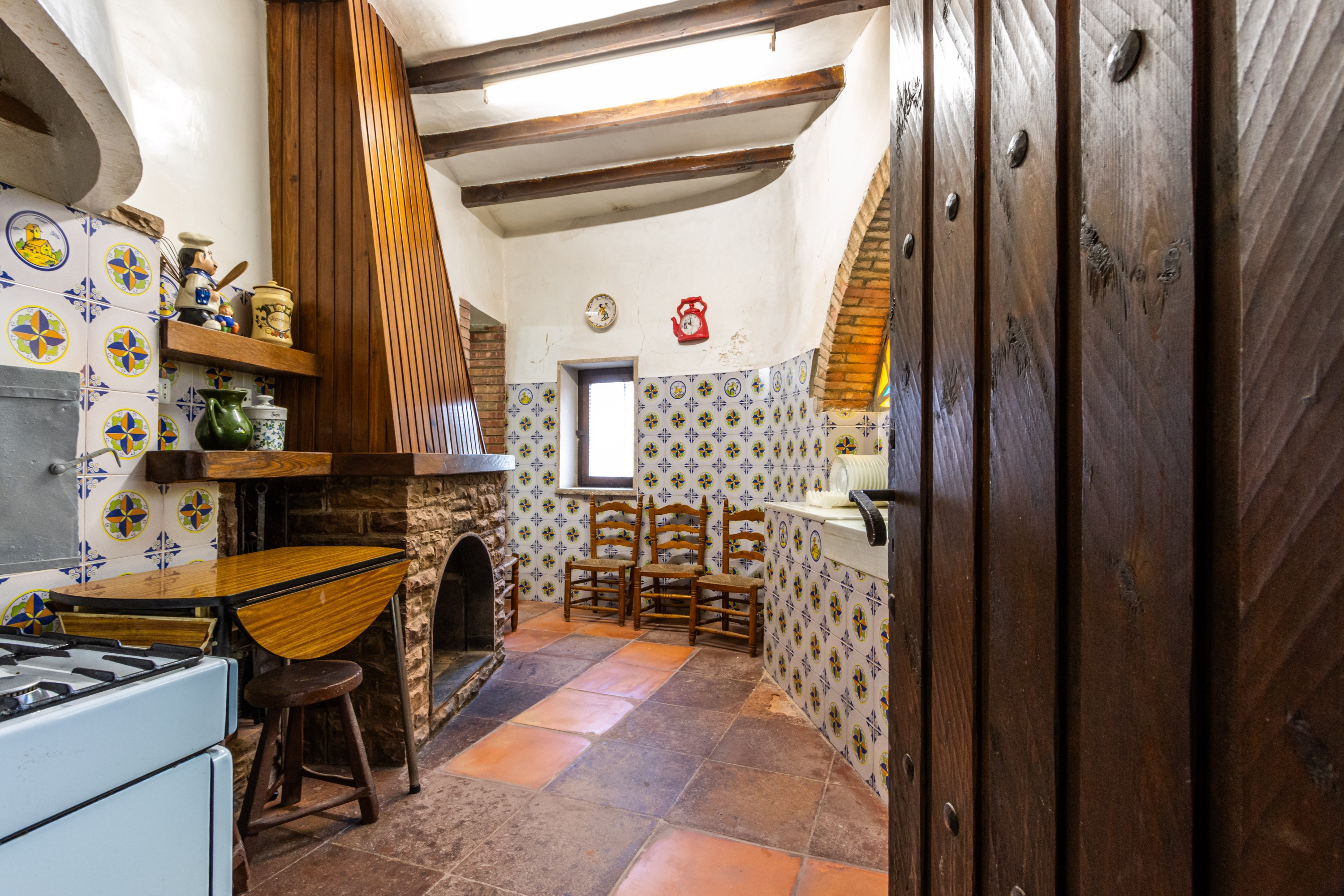 Stueetagen domineres af en opholds- og spisestue på 32,5 m², velegnet til familiesammenkomster og hyggelige stunder. Køkkenet på 10,10 m² er udstyret med åben pejs og et traditionelt brændefyr, der egner sig til madlavning efter klassiske metoder. Et badeværelse med bruser (3,80 m²) fuldender denne etage.