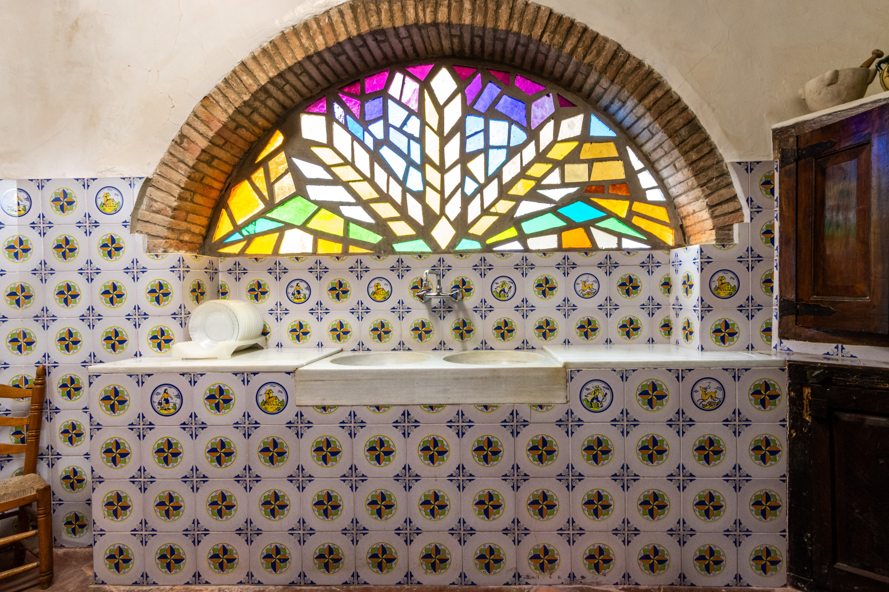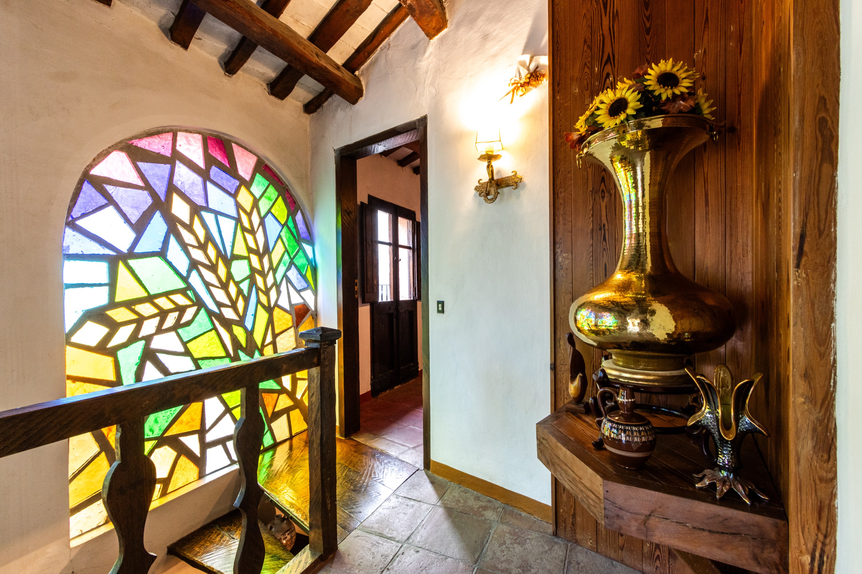 Husets vinduer er udsmykket med farvede glasruder, som i dagtimerne skaber smukke lyseffekter i rummene og om aftenen bidrager til en særlig stemningsfuld atmosfære. Den markante arkitektur har inspireret flere kunstnere til at forevige huset, kendt som “La Facina”, i oliemalerier.