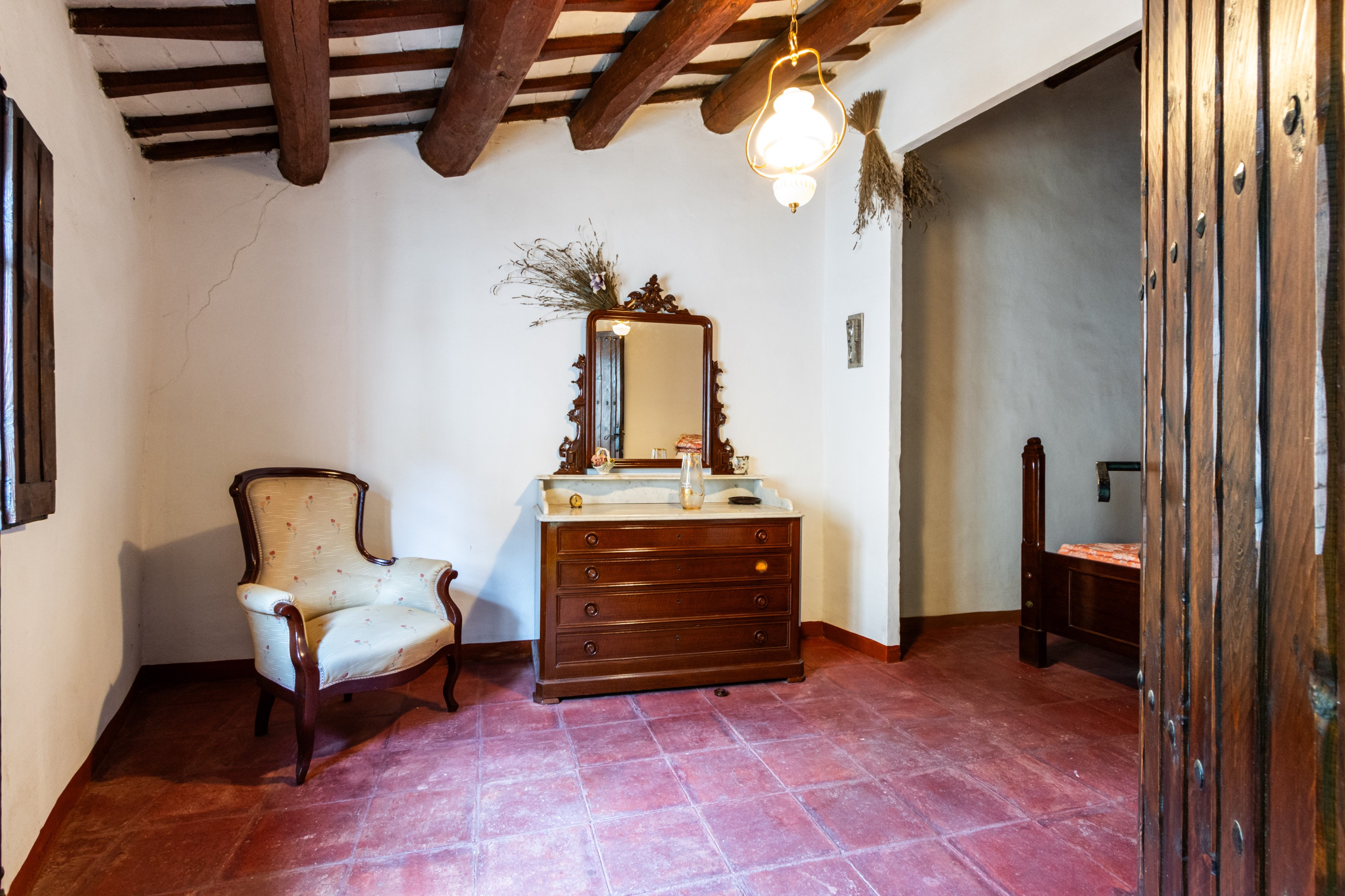 En omhyggeligt bevaret trappe i massivt egetræ fører til førstesalen, hvor der findes fire rummelige dobbeltværelser. Værelserne er lyse og byder på fri udsigt over den omkringliggende natur.