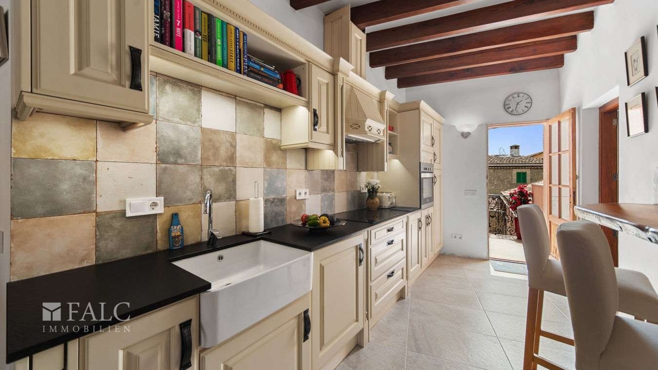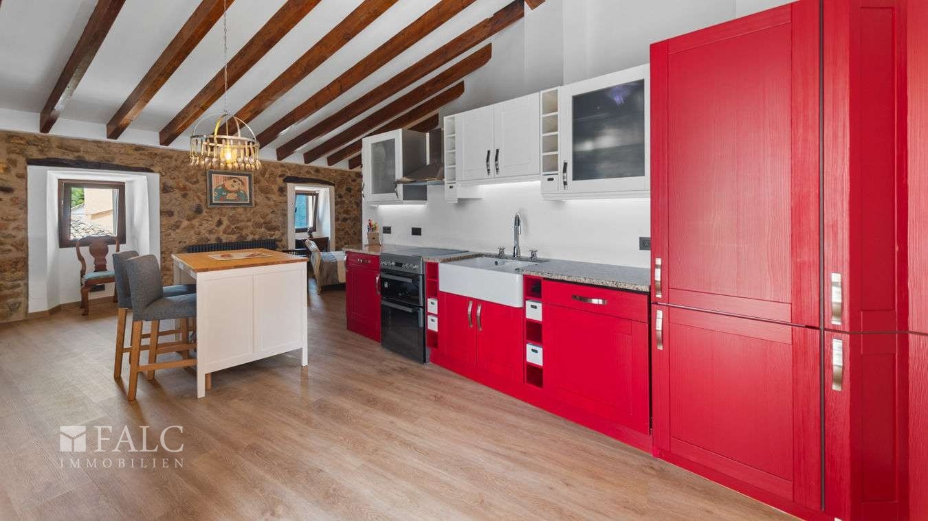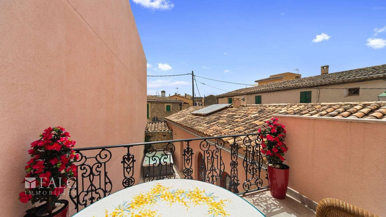 Anden etage består af et lyst studie med opholds- og spisefacilitet, soveplads, køkken og badeværelse. Herfra er der adgang til en terrasse med en uovertruffen udsigt over bjergene og den traditionelle mallorcinske landsby.