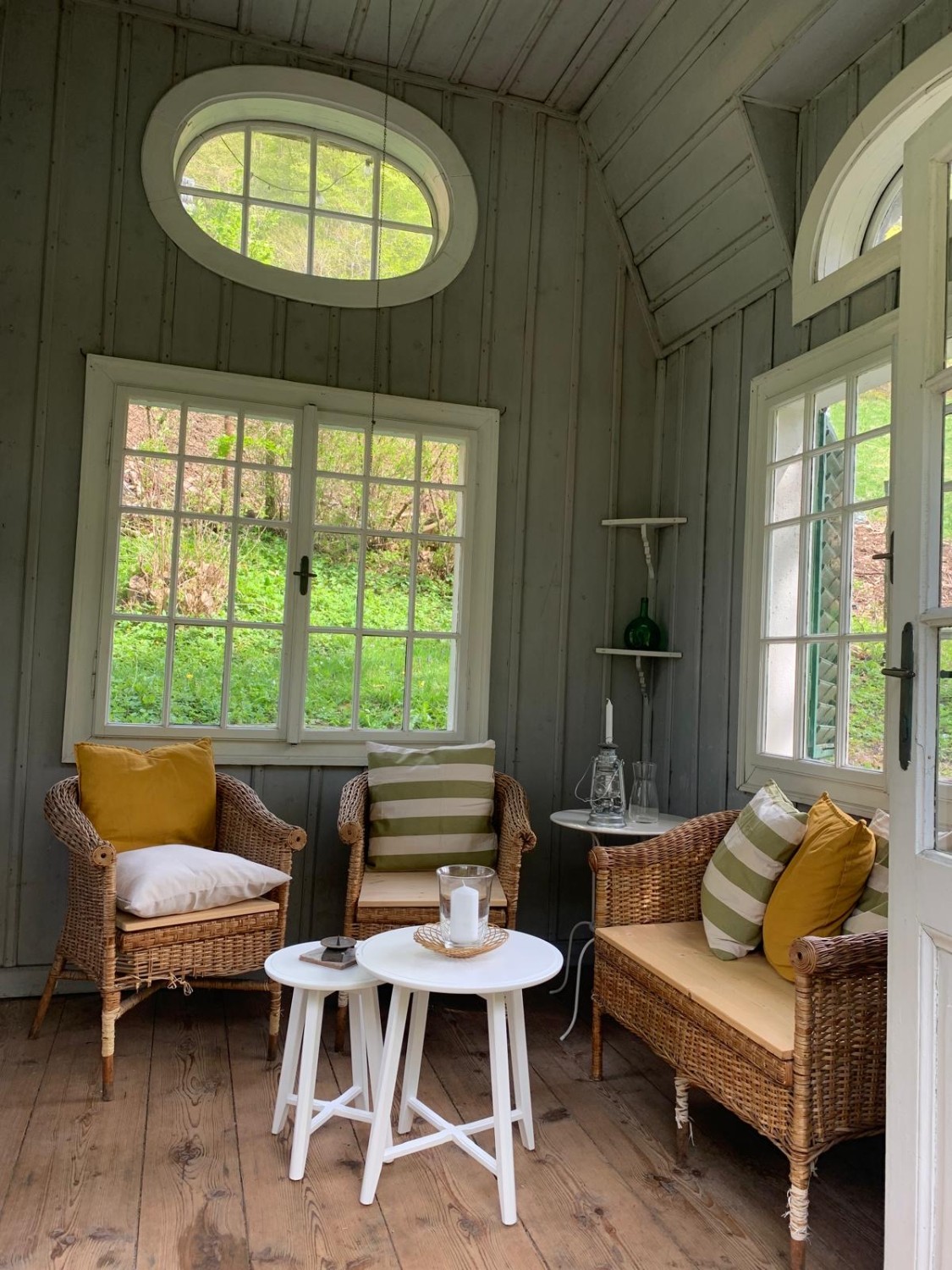 - Udendørs: Historisk lysthus, 2 haveskur, pavillon.
