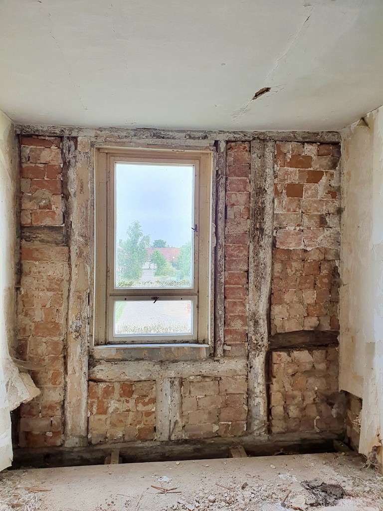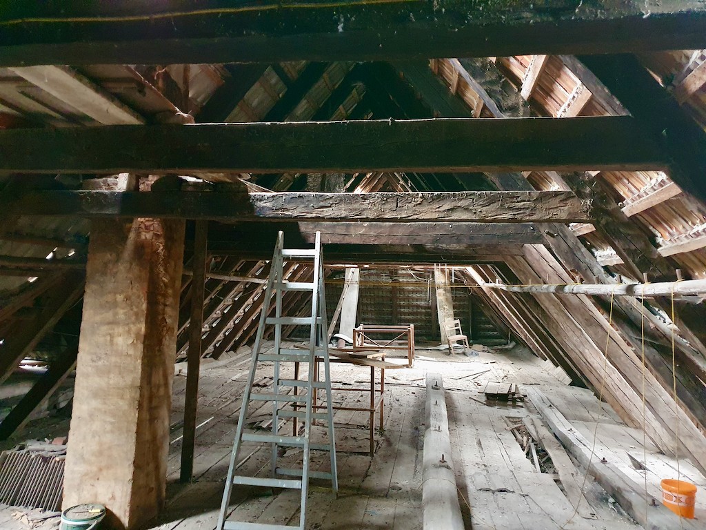 På trods af de forskellige ændringer og misbrug efter 1945 er der bevaret nogle elementer fra byggeperioden, f.eks. døre og trapper, indenfor. Den lange periode med tomgang og manglende vedligeholdelse har forårsaget betydelige skader på husets bjælker. De nuværende ejere har derfor fået udarbejdet en fortegnelse over beskadiget tømmer, som kan bruges til at udskifte tømmeret.