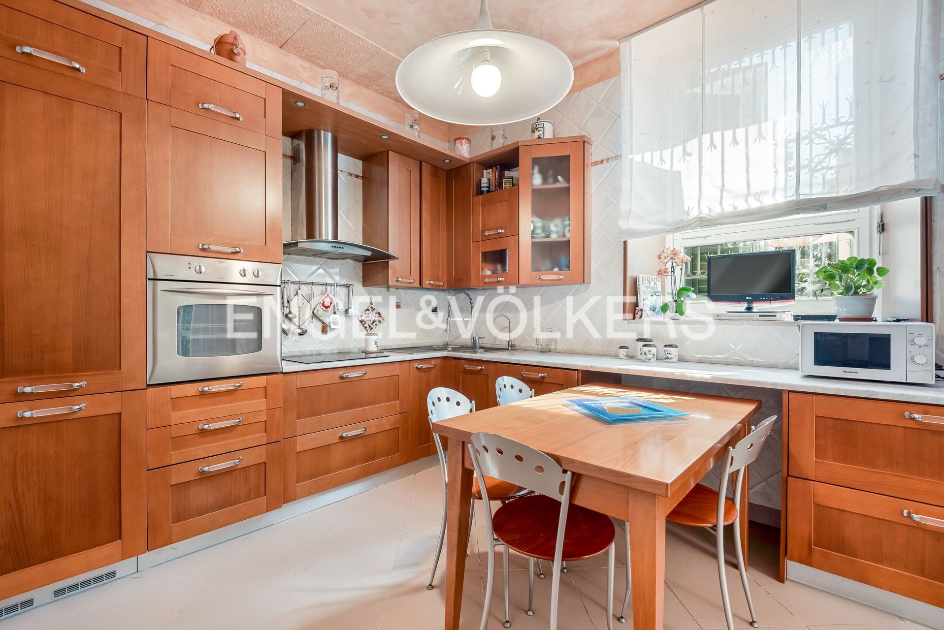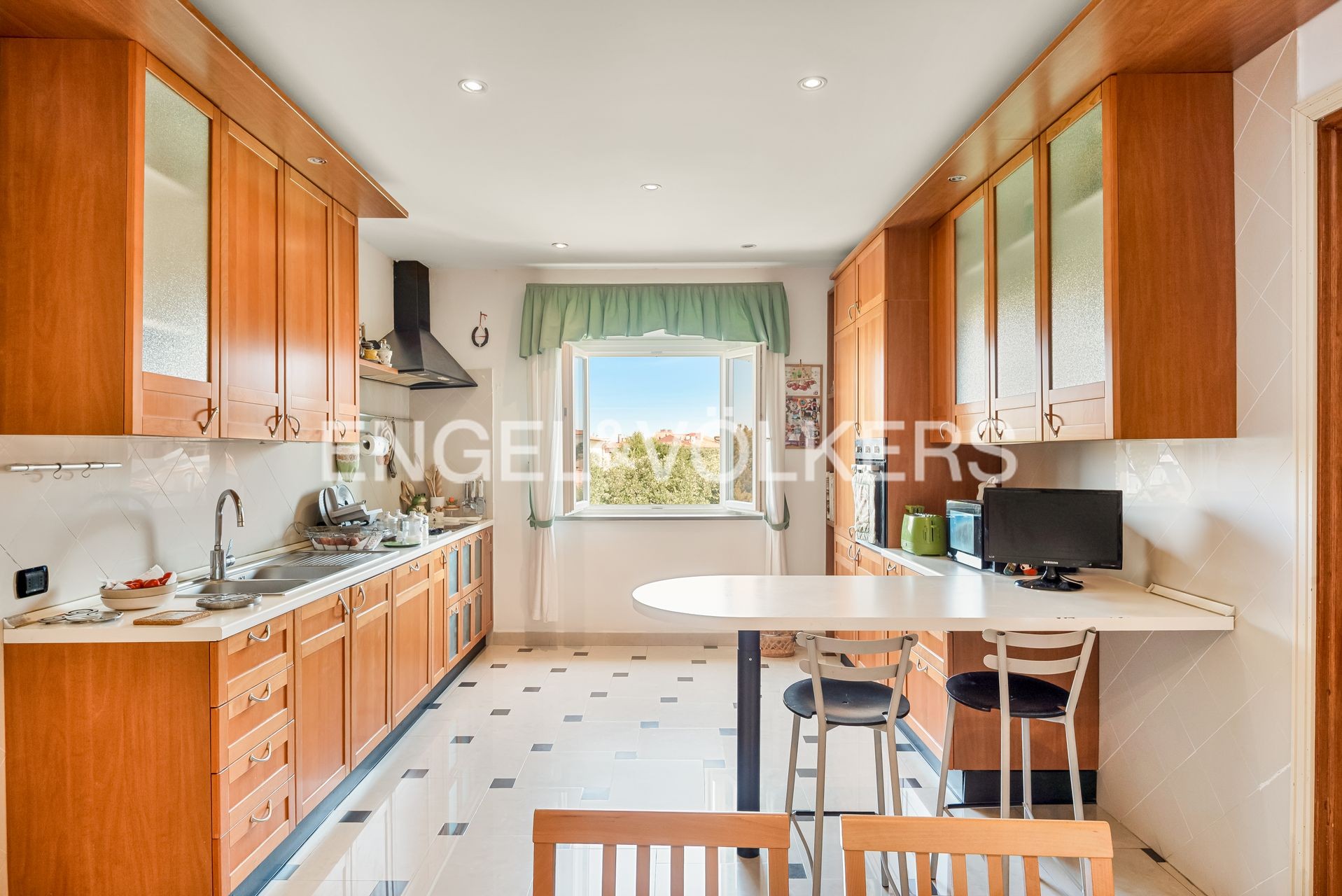 Großes Doppelwohnzimmer mit Kamin und Zugang zur einzigen Ausserterrasse der Liegenschaft mit Meerblick, Esszimmer, Wohnküche, vier Schlafzimmer, zwei Bäder, Abstellräume und Waschküche.