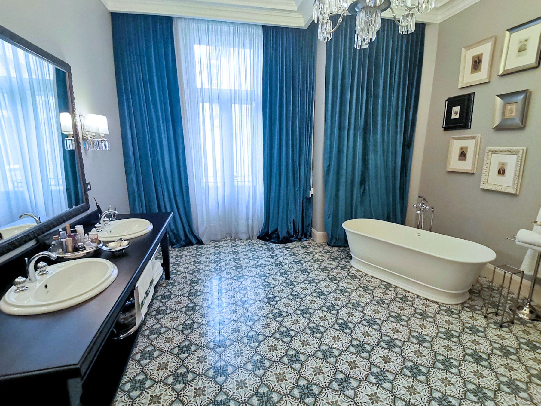 Die Wohnung verfügt außerdem über ein großes Badezimmer mit Badewanne, ein separates Duschbad, ein zusätzliches Badezimmer sowie eine separate Toilette.