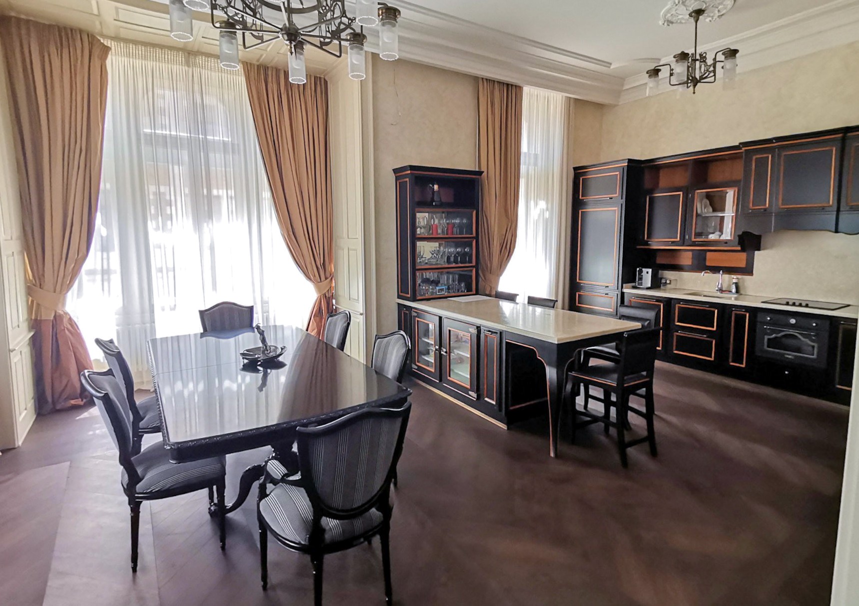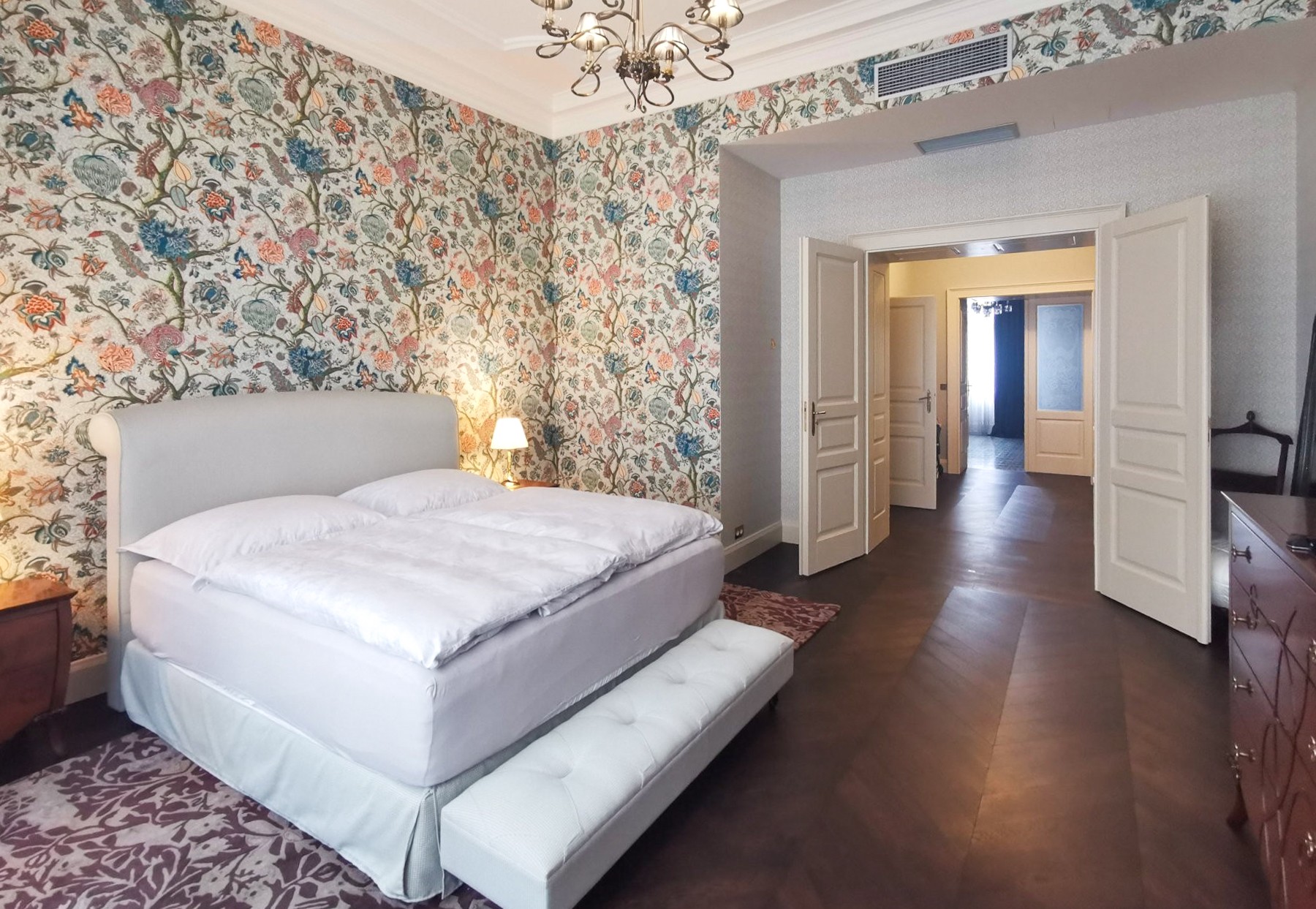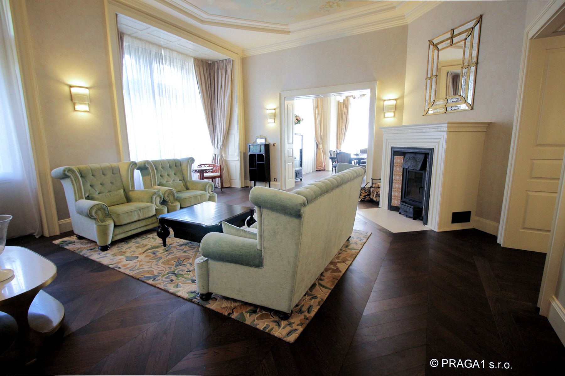 Große, gepflegte Wohnung in einem historischen Gebäude im Zentrum von Prag, direkt an der Moldau-Promenade. Die gepflegte Wohnung biete geräumige 280 m² Wohnfläche und befindet sich im dritten Stock mit Balkon und Flussblick.