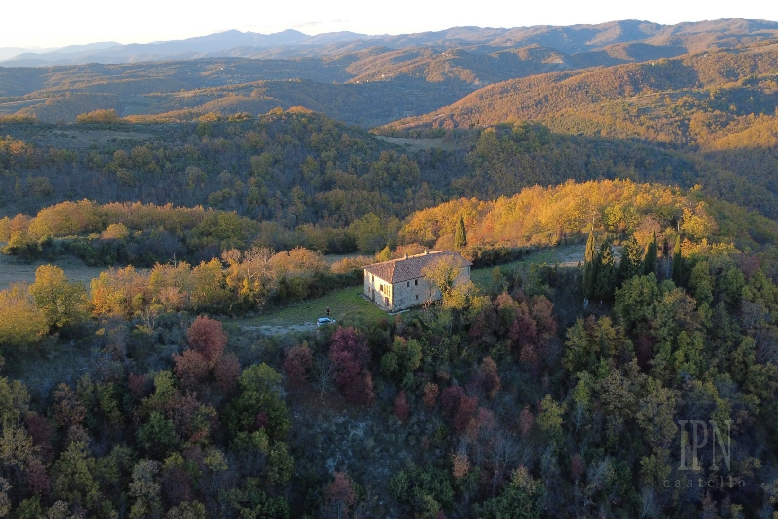 La proprietà comprende una casa colonica principale di 227 mq più una dependance/rovina di 100 mq, situata su un terreno di circa 5 ettari. L'accesso è comodo tramite una strada asfaltata seguita da soli 200 metri di strada bianca, che garantisce sia l'accessibilità che l'isolamento.