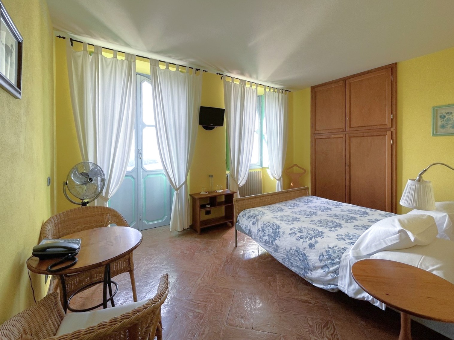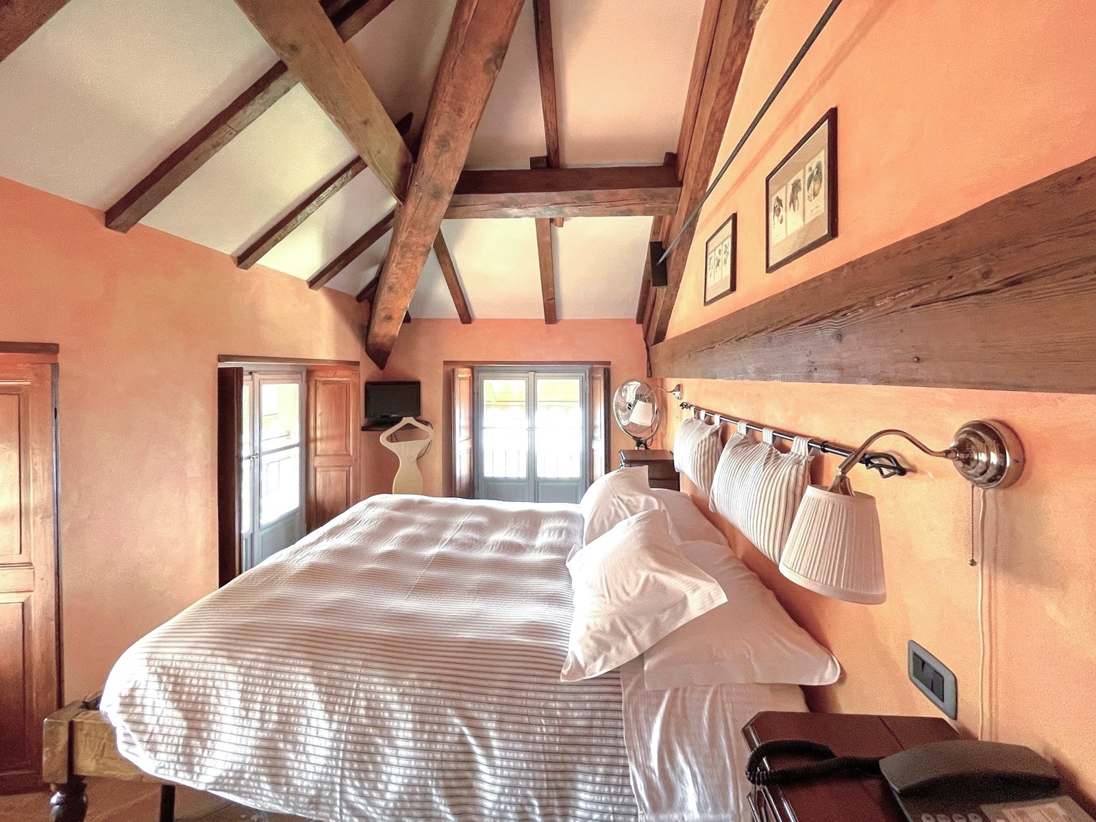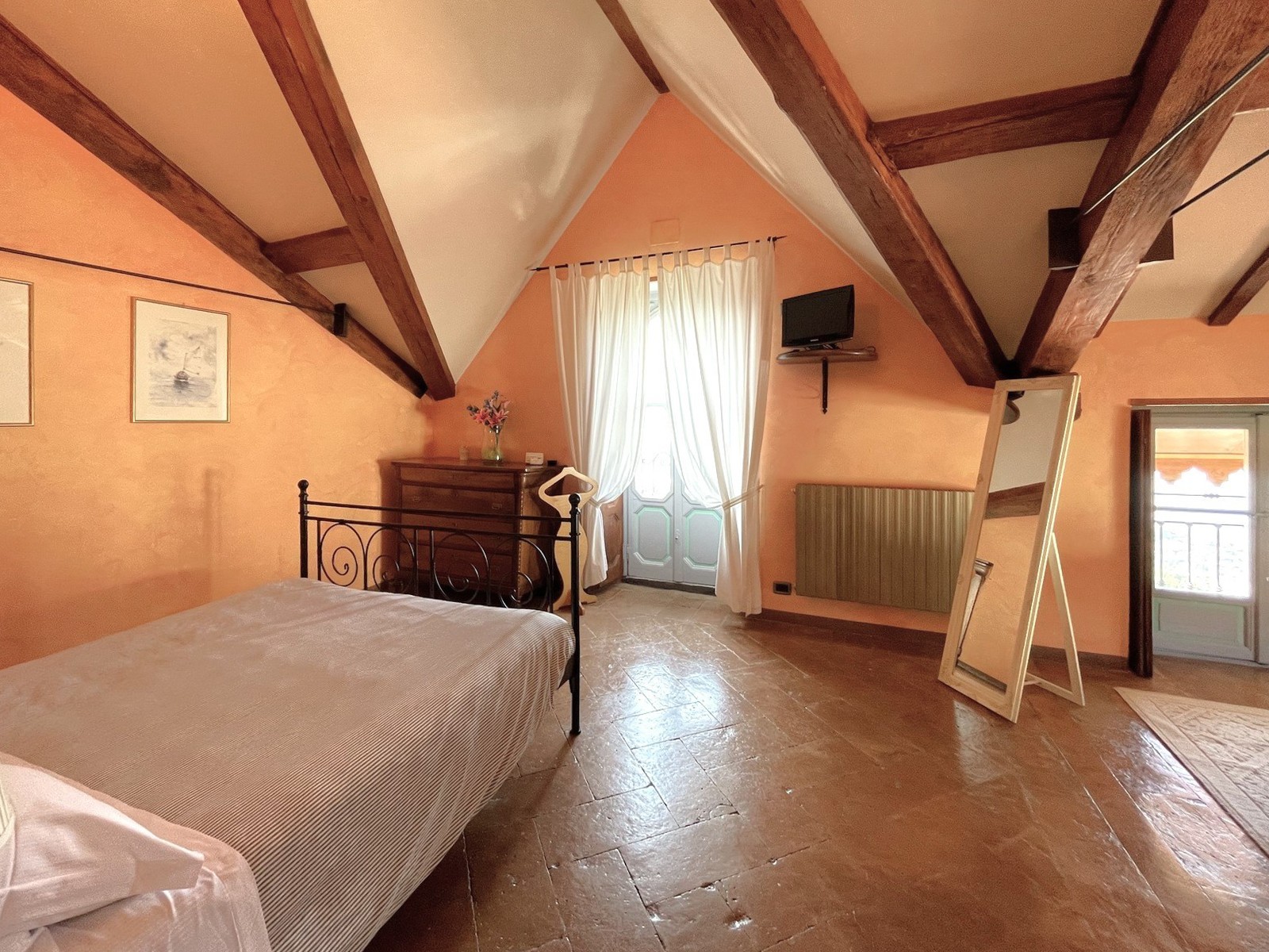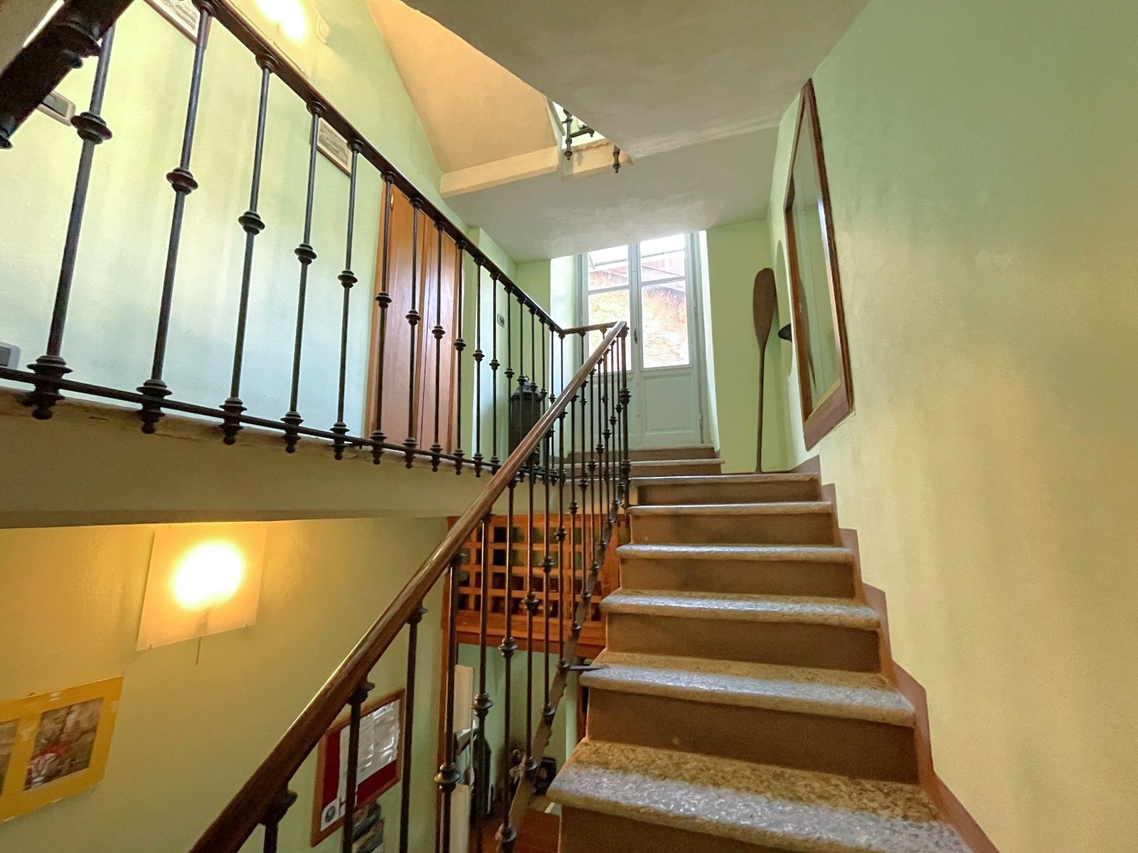 Im Erdgeschoss des Hauptgebäudes befinden sich eine Eingangshalle, ein großer Wohnsalon mit Kamin und schönen Originalfresken, zwei Badezimmer und ein Hauswirtschaftsraum. Im ersten und zweiten Stock befinden sich jeweils zwei geräumige Schlafzimmer, die beide ein Bad en-suite besitzen. Im Dachgeschoss gibt es zwei weitere Schlafzimmer mit Balkon und ebenfalls einem Bad en-suite. Das Untergeschoss verfügt über einen großen Keller und bietet Zugang zum Garten.
