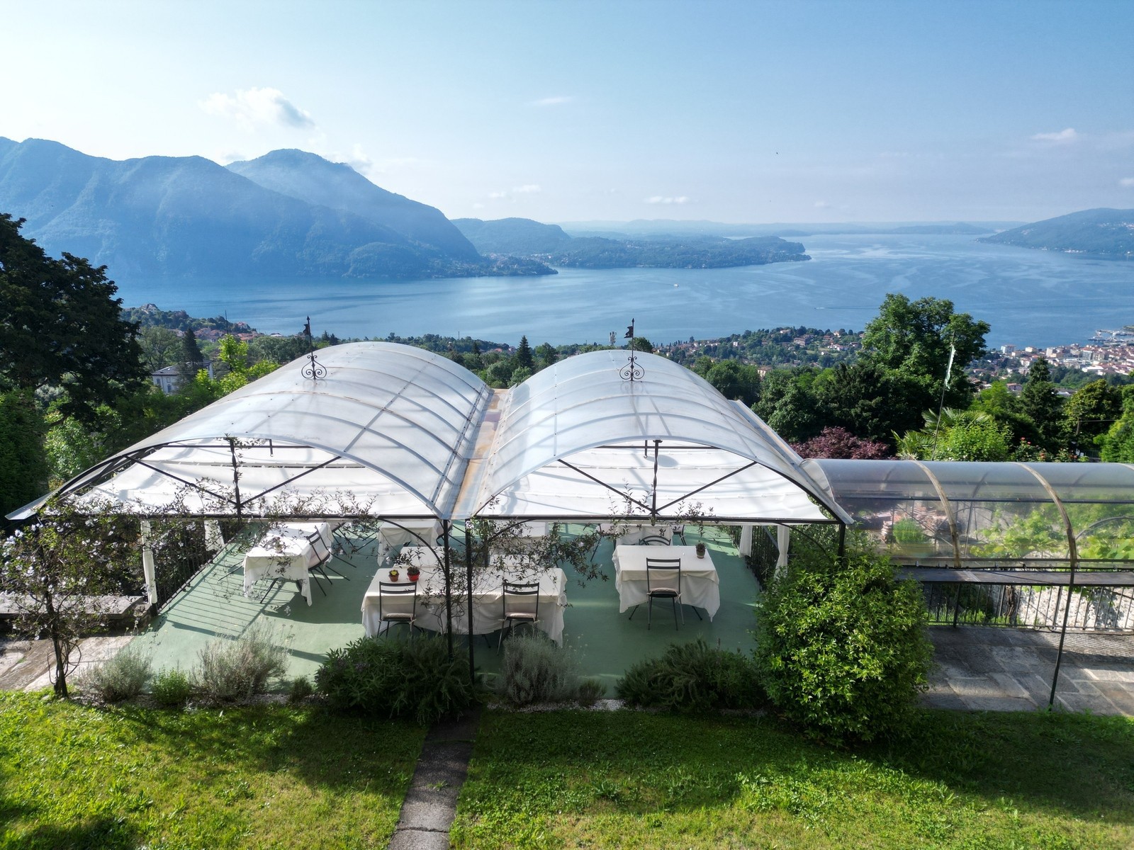 Die große Terrasse sorgt für entspannte Momente am Lago Maggiore. Die Immobilie ist sowohl als privater Wohnsitz als auch für gewerbliche oder touristische Zwecke ideal geeignet.