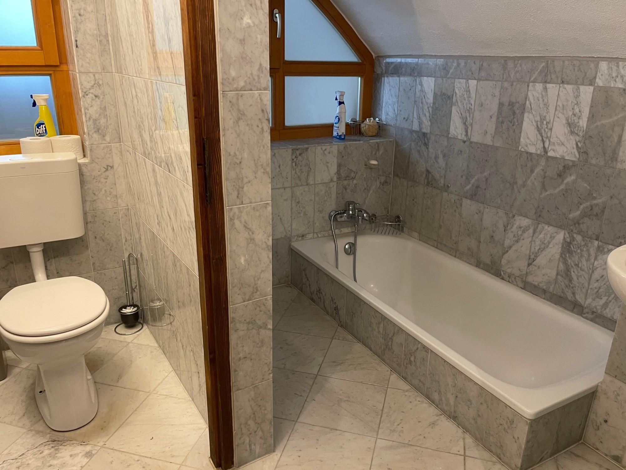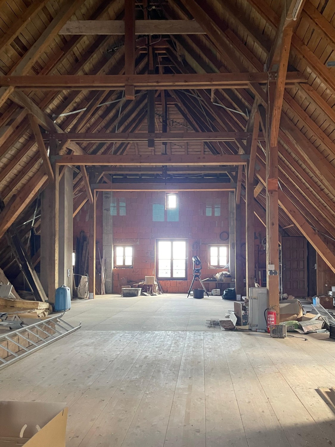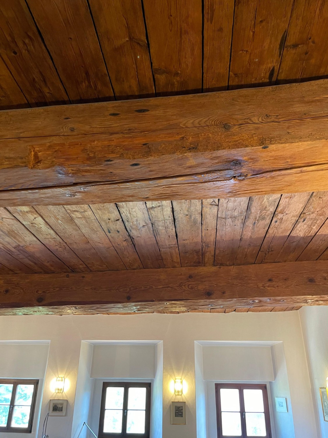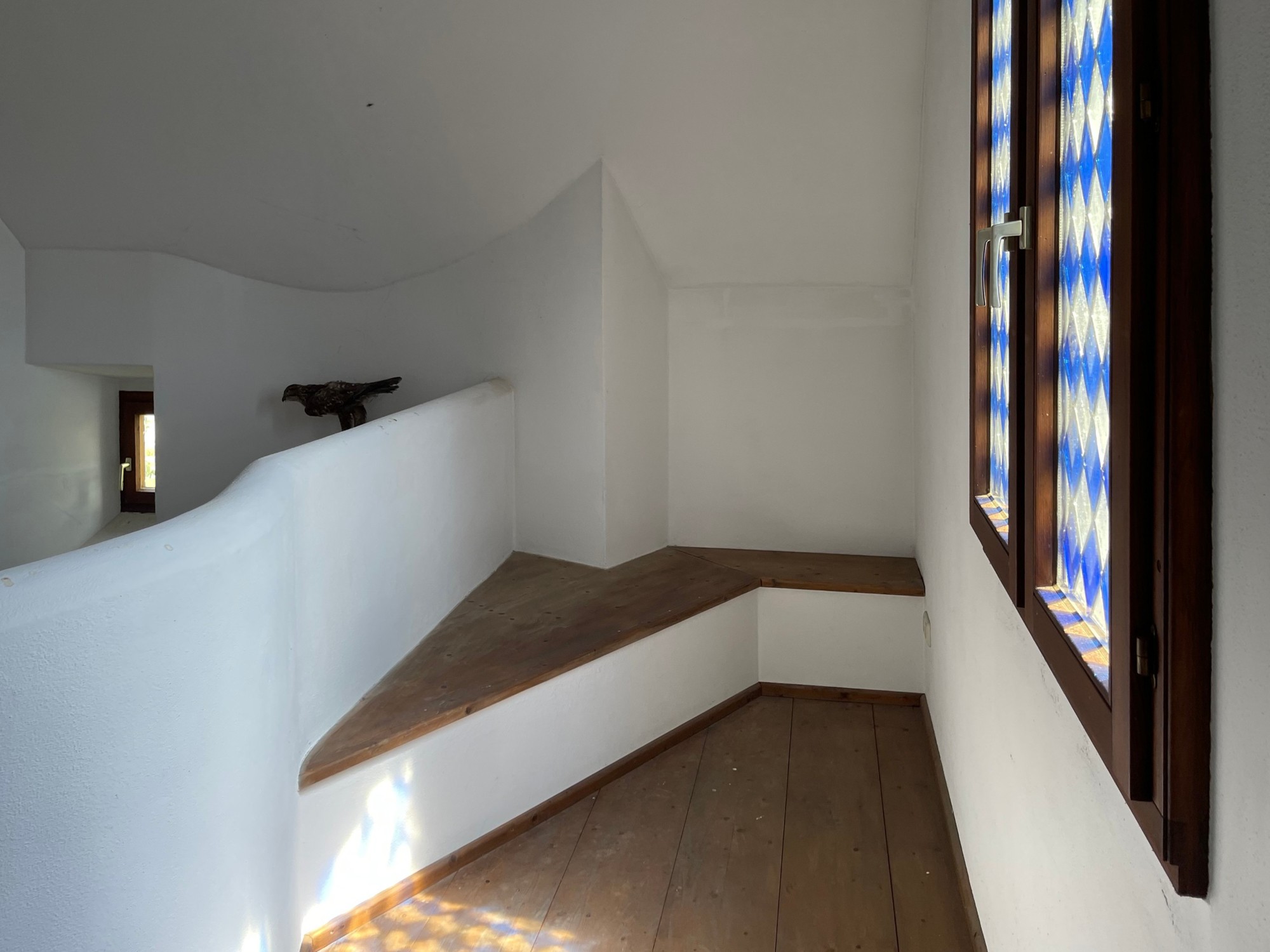 Das sehr solide und gesunde Schlossgebäude mit seinen bis zu 1 m starken Mauern, sowie den dicken Gewölbe- und Holzbalkendecken, wurde in den 90-ern aufwendig kernsaniert und wird wohl weitere 500 Jahre überstehen. Es wurde auf seine historischen Grundrisse zurückgebaut und teilweise neu errichtet, dabei statisch grundlegend überarbeitet (Ringanker, Abfangen des Gewölbeschubs, etc.) und auf einen modernen gehobenen Wohnstandard gebracht (alles neu: ZH, FBH, Sanitär, Elektro, Böden, Putz, Dach, Treppen, Garage). Zumal die letzte Renovierung ungefähr 30 Jahre zurückliegt, müssen je nach Art der Nutzung weitere Renovierungen und Umbauten vorgenommen werden. Das Schloss hat eine beherrschbare Größe, insbesondere wenn man nicht alle der 12 bis 15 "Zimmer" zu Wohnzwecken nutzt. Aufgrund dicker Tuffstein- und Ziegelwände und mehrfach verglaster Fenster erträgliche Heizkosten im Winter und angenehme Kühle während der Sommerhitze. Große Wendeltreppe vom Keller bis zum Dachboden mit separatem Zugang pro Etage, zusätzlich noch kleine interne Wendeltreppe von der Beletage (ca. 200m² Wohnung im 1.Stock, 1 Zi. im Rohbau) zum 2. Stock (die derzeitige Büroetage), Einbauküchen, Marmorbäder, 2-Zimmer-Einliegerwohnung im Erdgeschoß, davor ca. 150m²-Gewölbehalle mit Marmorsäulen, auch dort FBH, ein 100m²-Keller, ein ausbaubarer neuer Dachboden (ca. 7m hoch, 200m²). Nördlich an Straße angrenzend ein erschlossenes Baugrundstück (evtl. für zusätzliche Garagen oder ein Haus). Im Westen stilgerechte 50m²-Doppelgarage mit ferngesteuerten Holztoren, daneben ein Schuppen. Das Schloss hat natürlich Gemeindewasser, Kanalisation, Strom und schnelles Internet.