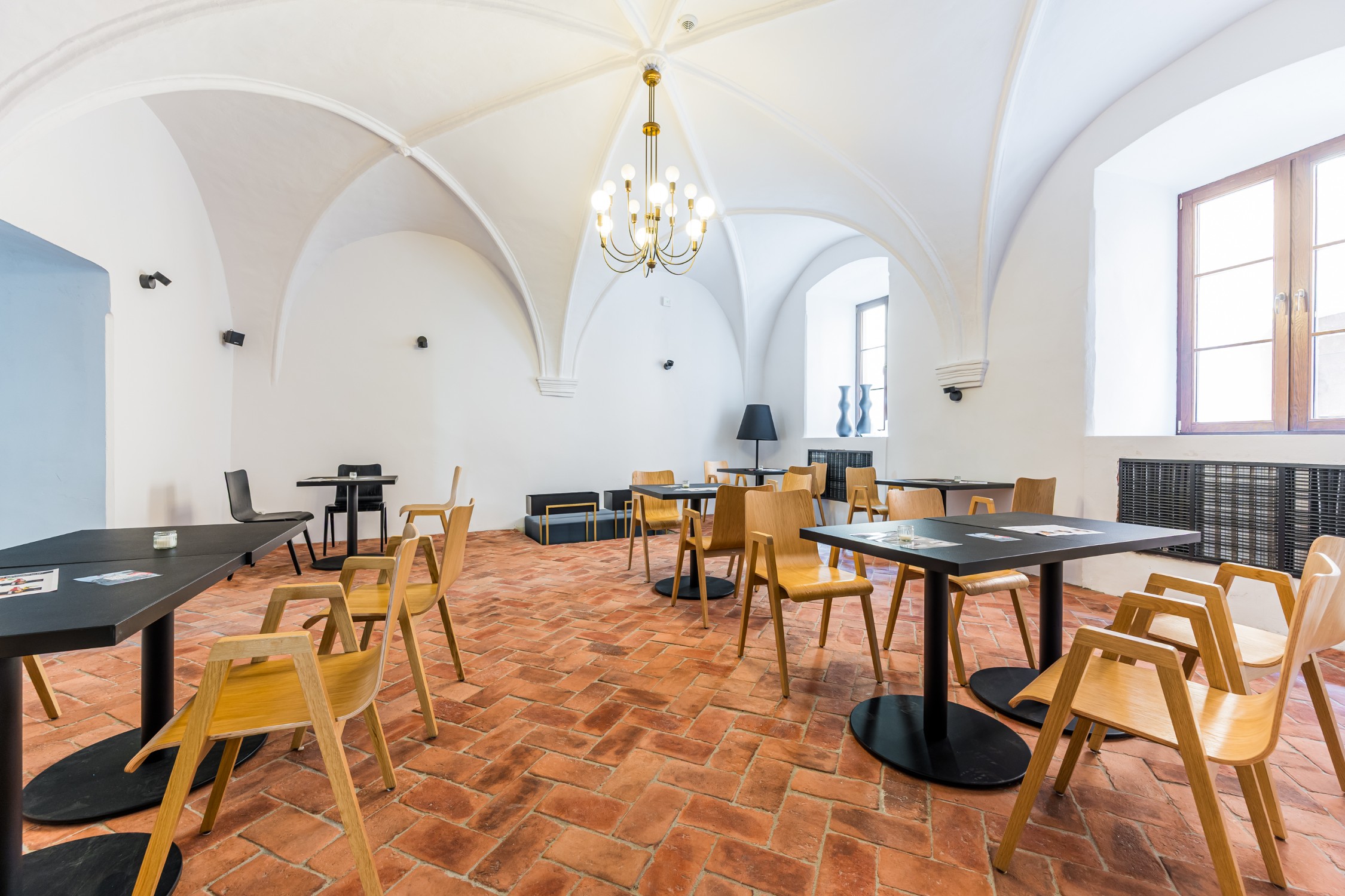 • Gastronomiebereich: elegante Restaurantfläche, Kaffeebar, Weinkeller mit restaurierten historischen Kaminen