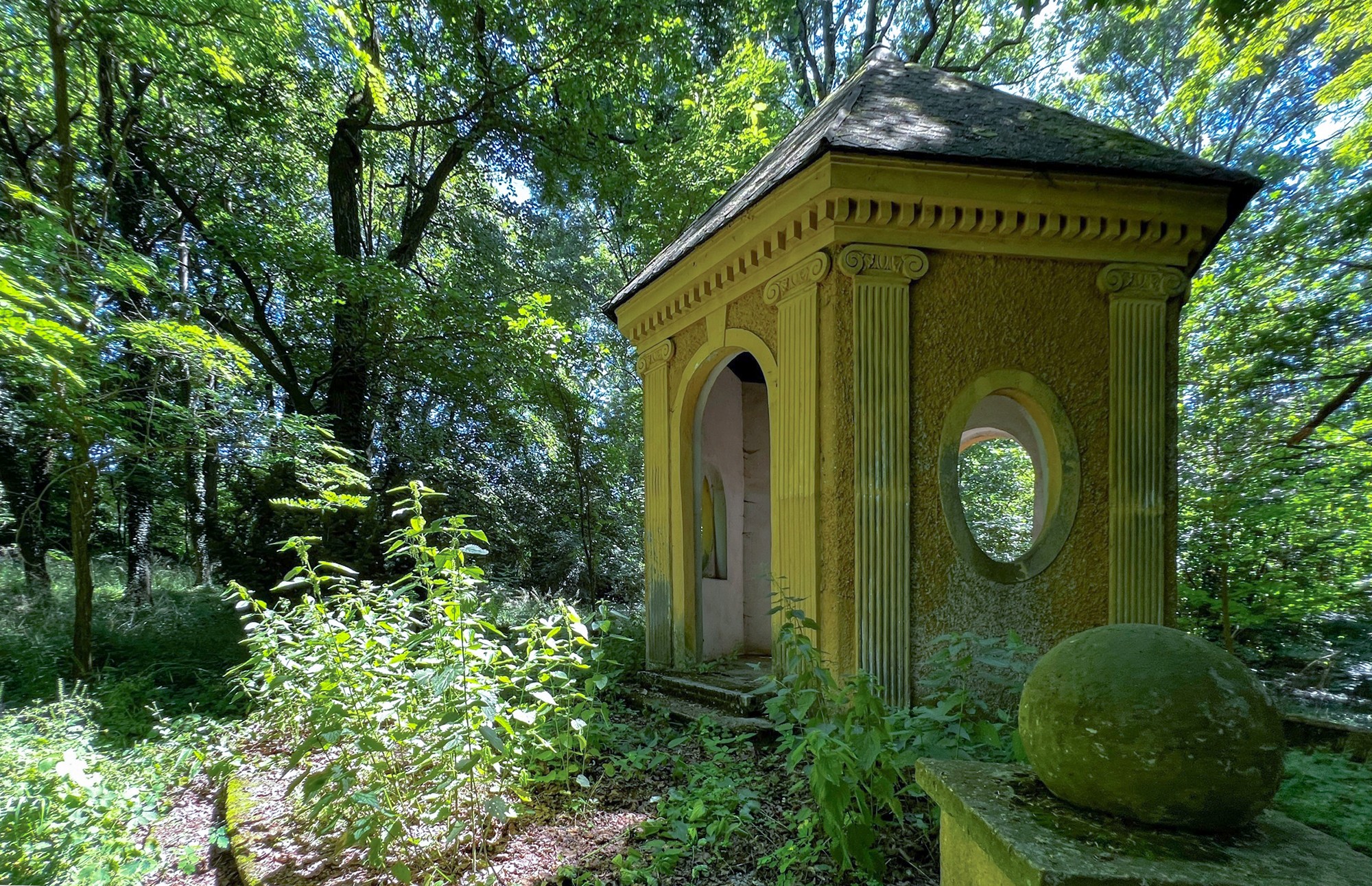 Das Schloss ist von einem englischen Landschaftspark umgeben. Zum Ensemble gehören weitere Gebäude: ein Wirtschaftsgebäude, ein Pförtnerhaus sowie eine Kapelle.