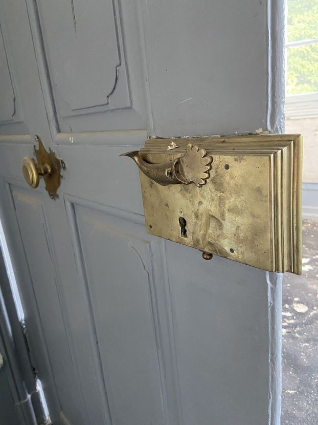 EG: Abfolge von verschieden großen Räumen, teilweise Dielenböden der Bauzeit, gefassten Wandverkleidungen und Einbauschränken der Zeit. Deckenstuck aus gezogenen Leisten. Mehrere Kontorzimmer mit Wandverkleidungen, Deckenstuck des Klassizismus. Ehemalige Hauskapelle mit Bogendecke.