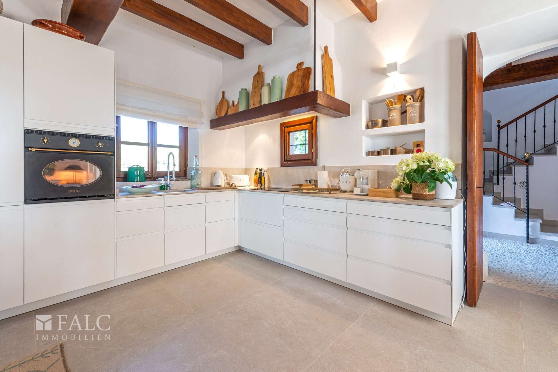 Das Haupthaus wurde 2022/2023 umfassend saniert. Im Erdgeschoss befinden sich ein Wohnzimmer mit Kamin und Zugang zur Terrasse, eine Wohnküche mit Kamin und Essbereich, ein Doppelschlafzimmer mit Bad en suite und Kamin, ein Einzelschlafzimmer sowie ein Duschbad. Im Obergeschoss liegt die Master-Suite mit Ankleide, Bad en suite, Kamin und Zugang zur überdachten Terrasse. Im 2. Obergeschoss befindet sich ein Turmzimmer (ca. 20 m²) mit Blick auf den Klosterberg San Salvador und den Randa.