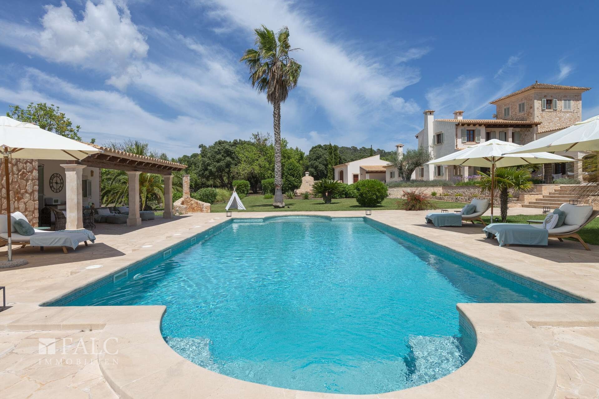 Nahe Cas Concos im Südosten Mallorcas liegt dieses Anwesen auf ca. 25.000 m² Grundstück. Es umfasst ein Haupthaus, ein separates Apartment, eine Pool-Casita sowie weitläufige Außenflächen mit Garten und Salzwasserpool.