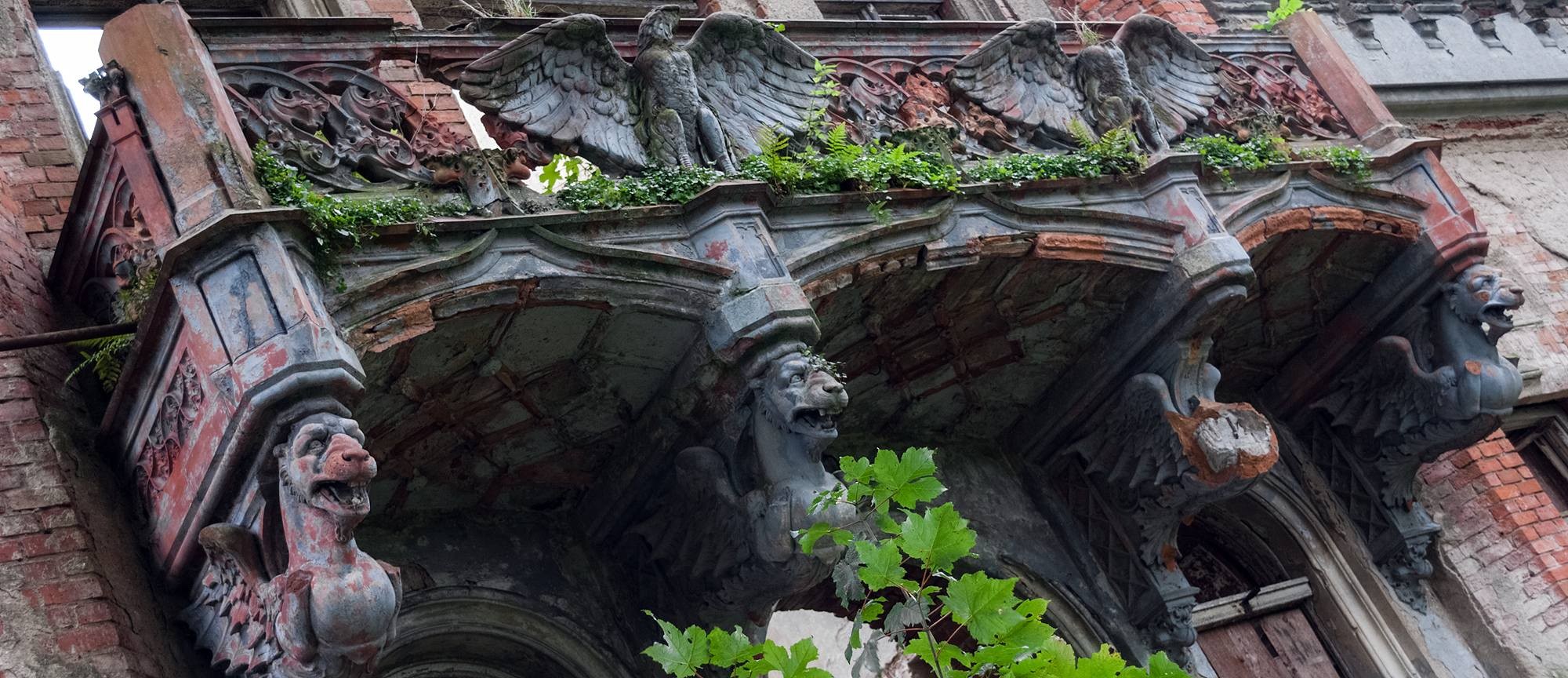 Ob sich der Status der imposanten Schlossruine mit dem markanten Drachenbalkon noch einmal ändert, ist ungewiss. Besucher sind jedoch eingeladen, Ideen mitzubringen und zu diskutieren, wie das Guts-Ensemble mit dem Tudor-Herrenhaus erhalten oder gar wiederbelebt werden kann. Beispiele zur Rekonstruktion von Schlössern findet man übrigens in Polen.Schoss Hohenlandin