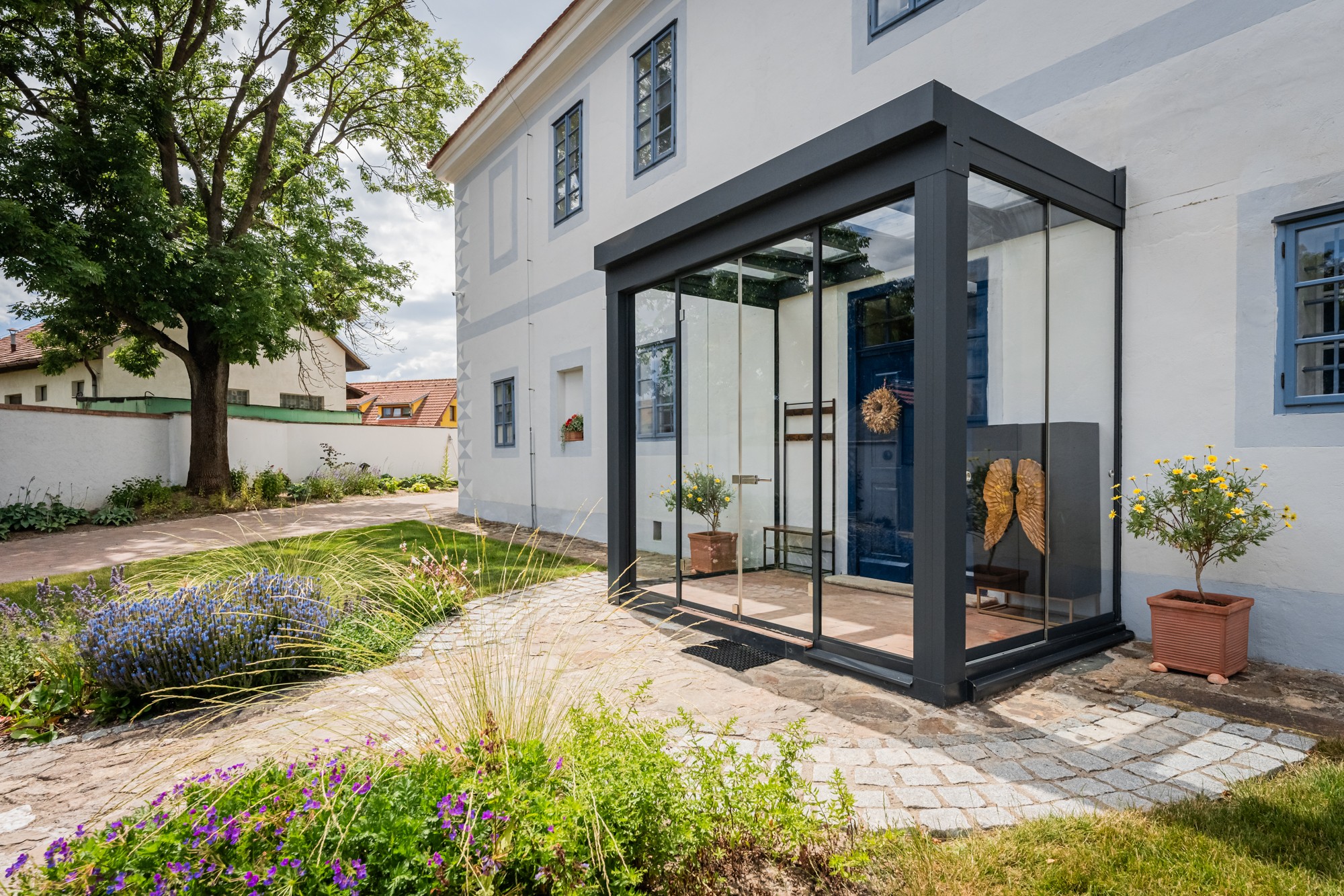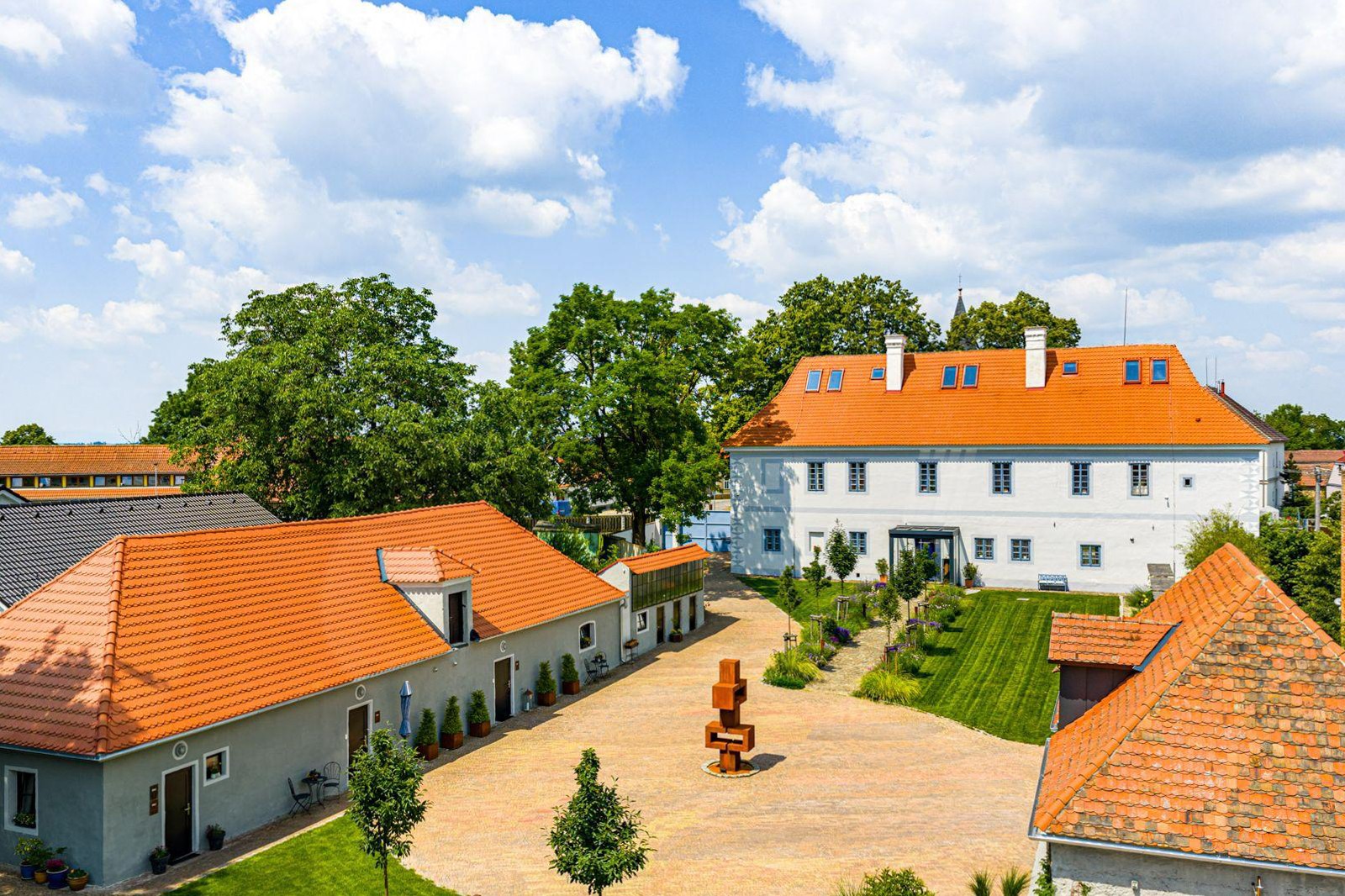 Als ich begann, mich intensiver mit der Geschichte auseinanderzusetzen, studierte ich alte Unterlagen aus den Archiven und war erstaunt, wie es hier Mitte des 13. Jahrhunderts aussah: Der niedere Adel errichtete einen gotischen Herrensitz mit Kirche und das Dorf war befestigt. Heute lässt sich an vielen Stellen noch fast acht Jahrhunderte Geschichte ablesen, mit markanten Merkmalen der verschiedenen Epochen – von der Gotik über die Renaissance bis zum Barock. Zu Beginn des 18. Jahrhunderts wurde der Renaissancebau, der nach den Zerstörungen des Dreißigjährigen Krieges in schlechtem Zustand war, von den Schwarzenbergern um einen barocken Teil erweitert. Diese Nachvollziehbarkeit bot eine großartige Grundlage für jede Art von Überlegungen. Auch der Name Schwarzenberg spielte bei der Kaufentscheidung eine Rolle: Eine bedeutende Familie in Böhmen, deren kulturhistorischer Einfluss bis heute spürbar ist und die die Entwicklung der Region entscheidend geprägt hat.