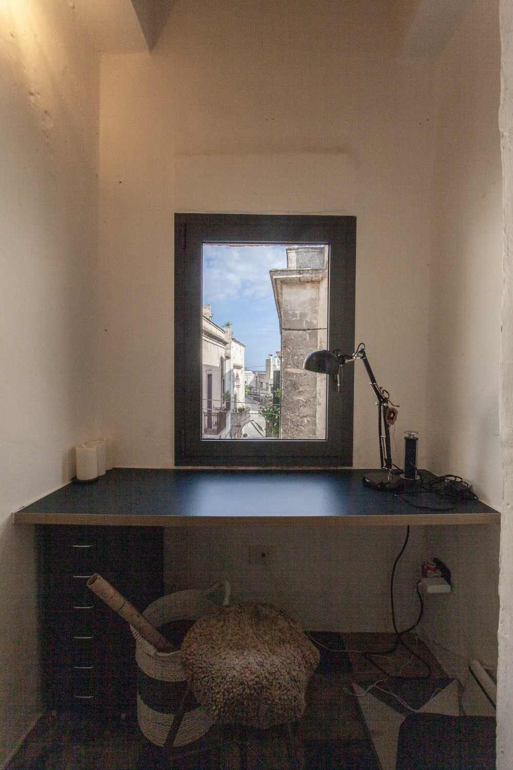 An internal staircase leads to the second floor, where former storerooms have been transformed into a spacious and atmospheric bedroom, a study area (easily convertible into a third bedroom), a second bathroom with a shower and a practical laundry/ironing room. This floor also benefits from air conditioning and electric underfloor heating. The study opens onto a balcony with a splendid view of the medieval castle and rooftops of Oria.