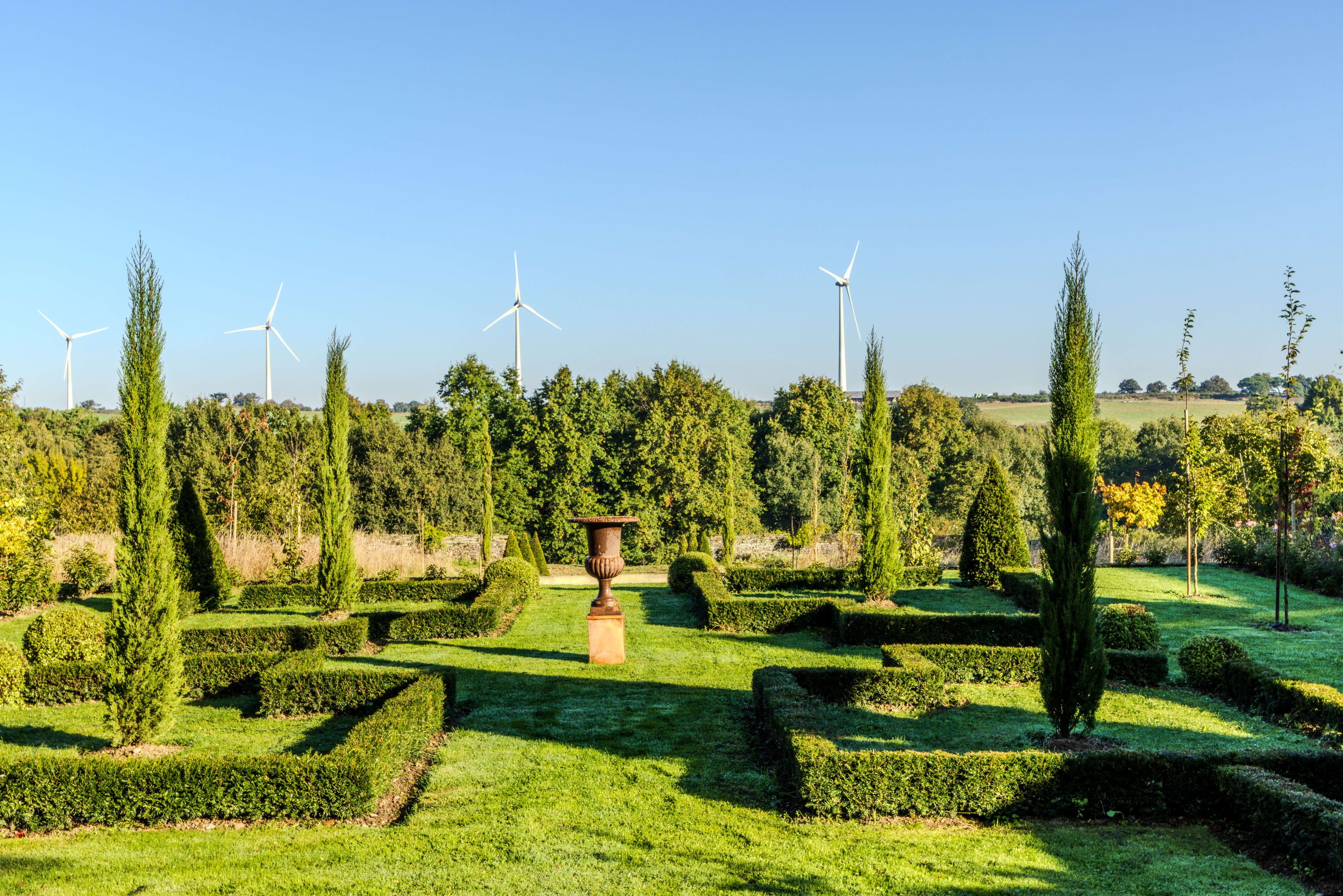 - Den andre hagen, atskilt fra den nordlige delen med en mur, åpner seg mot det omkringliggende landskapet. Det er en hage hvor unge trær vokser og danner en overgang fra den formelle hagen til plenområdet lenger ned.