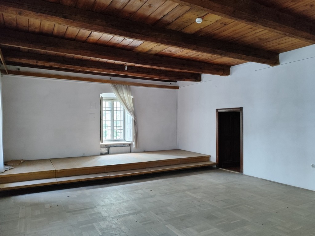 -parter: 222,2 m² (sala wystaw, ekspozycje, biuro, archiwum, sanitariaty),