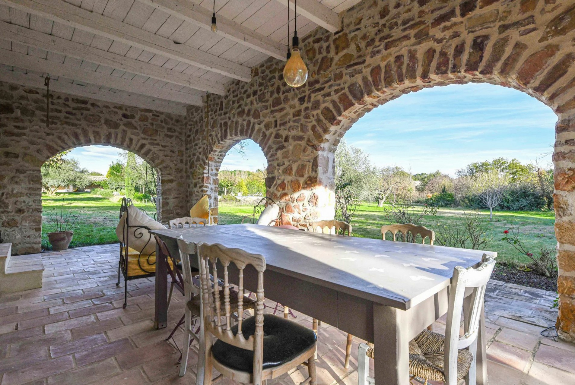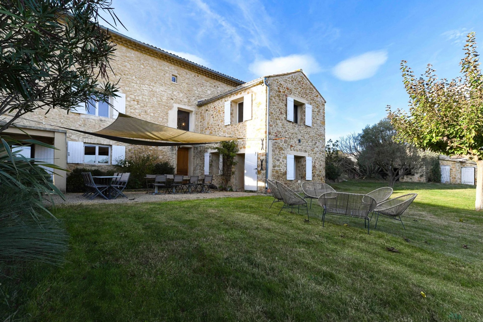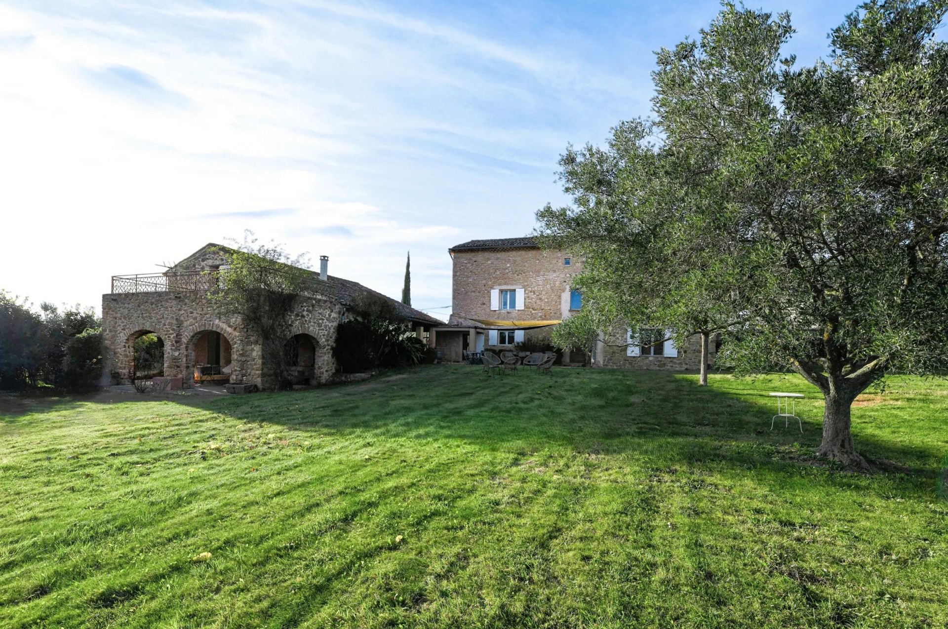 Bassenget (15 x 6,8 m, klorfiltrering) ligger gunstig plassert foran hovedbygningen og har et poolhouse på 41 m². Parken med middelhavstrær tilbyr åpne utsikter over landskapet.