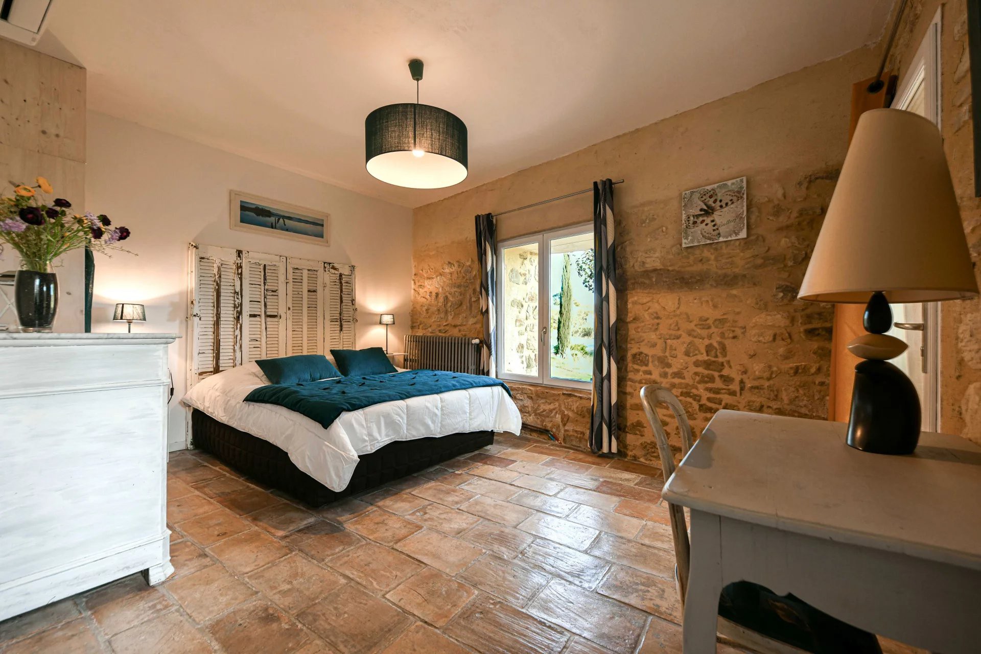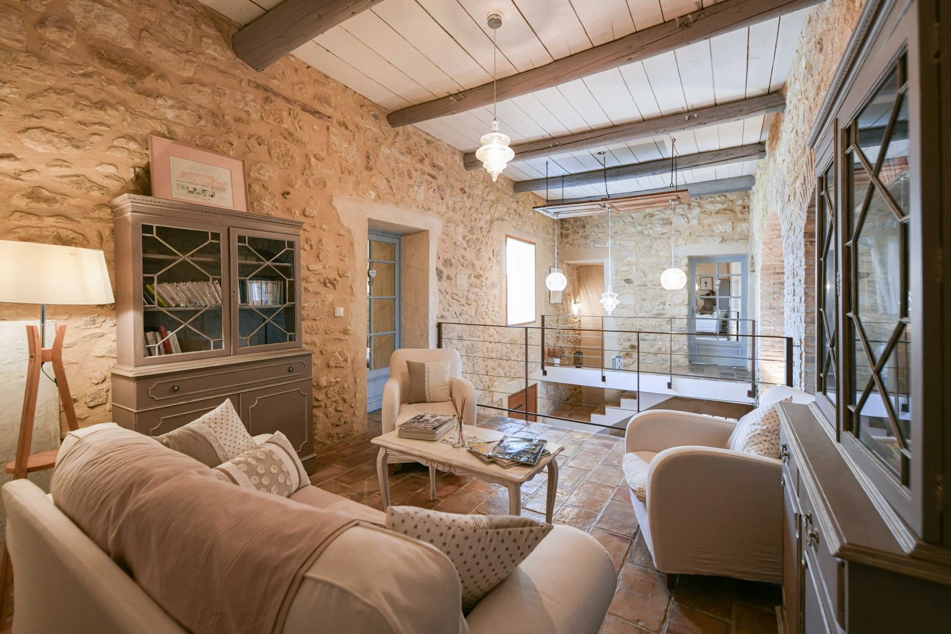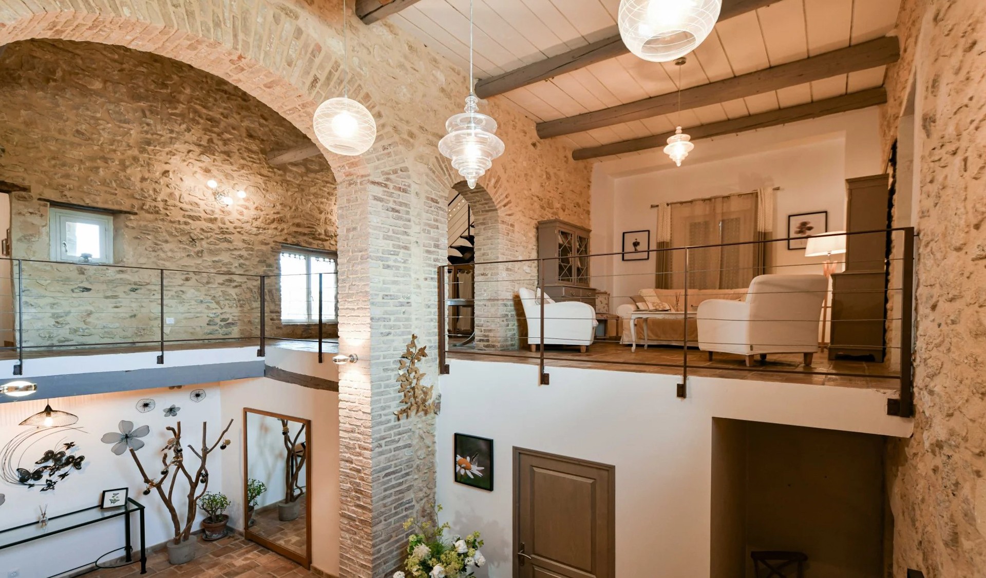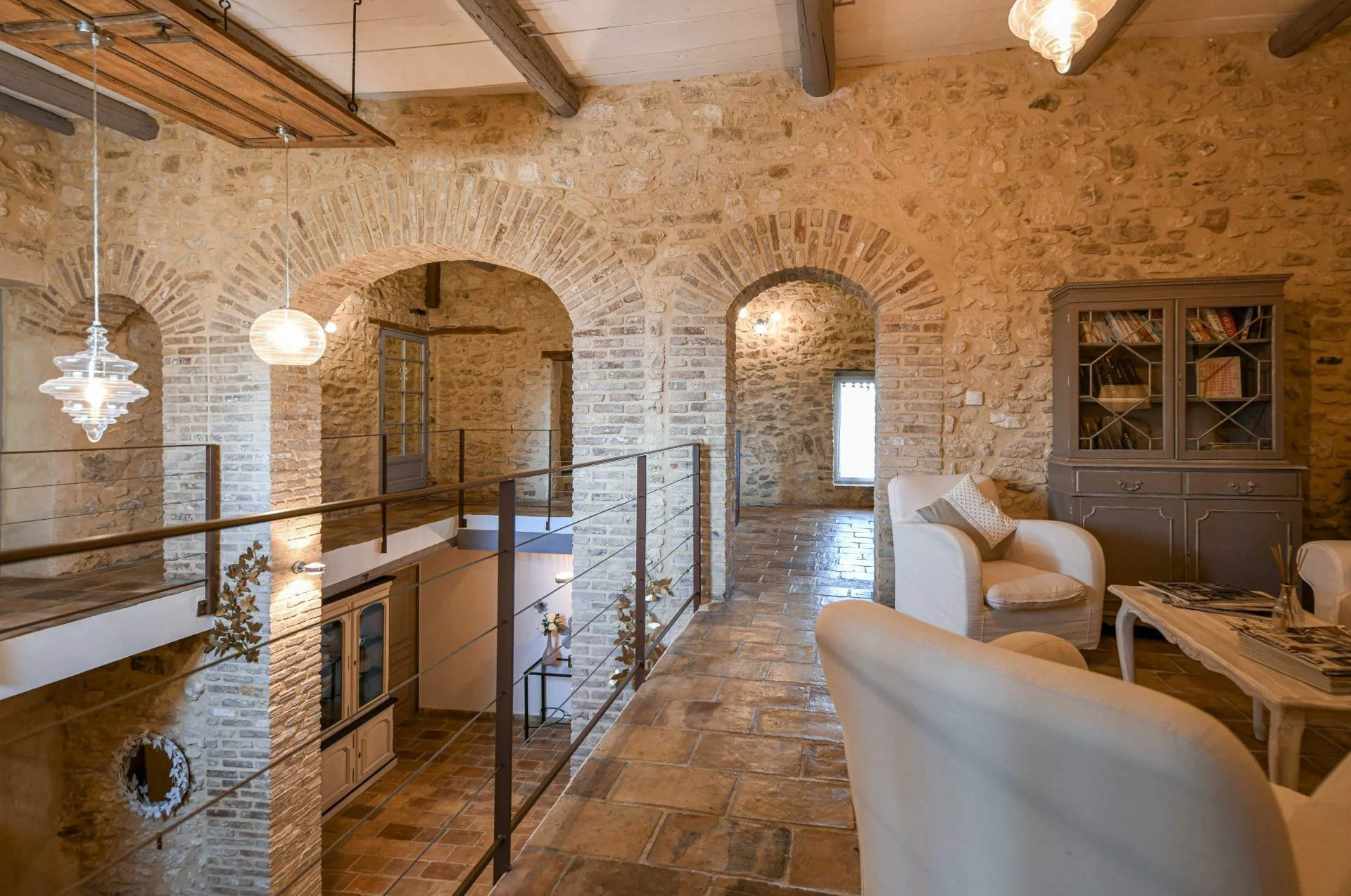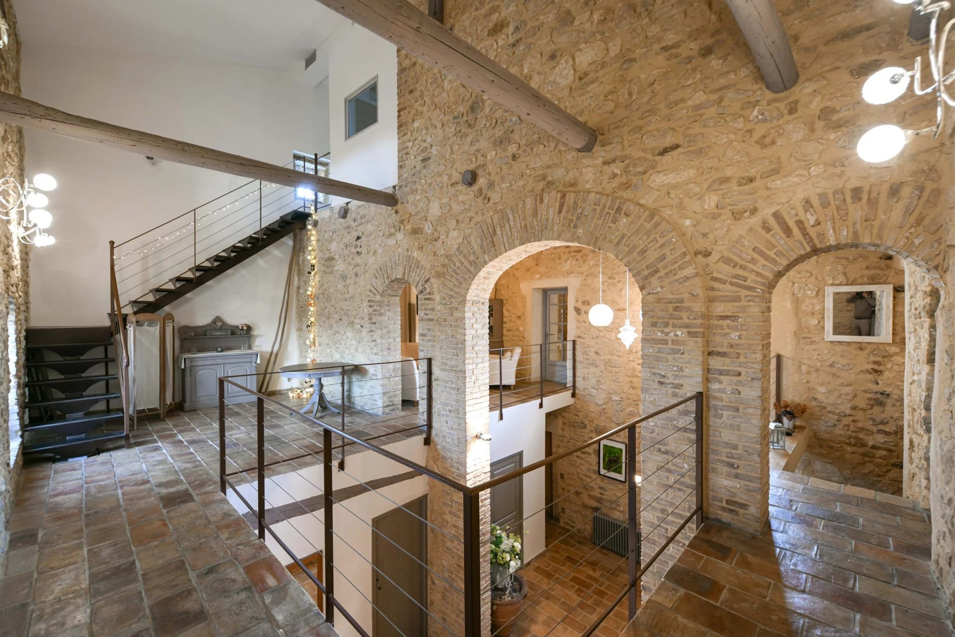 Eiendommen er restaurert med historiske materialer og utstyrt med moderne fasiliteter. To sentrale varmesystemer (gass + varmepumpe) og reversibel klimaanlegg i soverommene i hovedbygningen (unntatt ett) sikrer komfortabel bolig. Gjestehuset har gassoppvarming og peis. Det finnes også en privat brønn på eiendommen.
