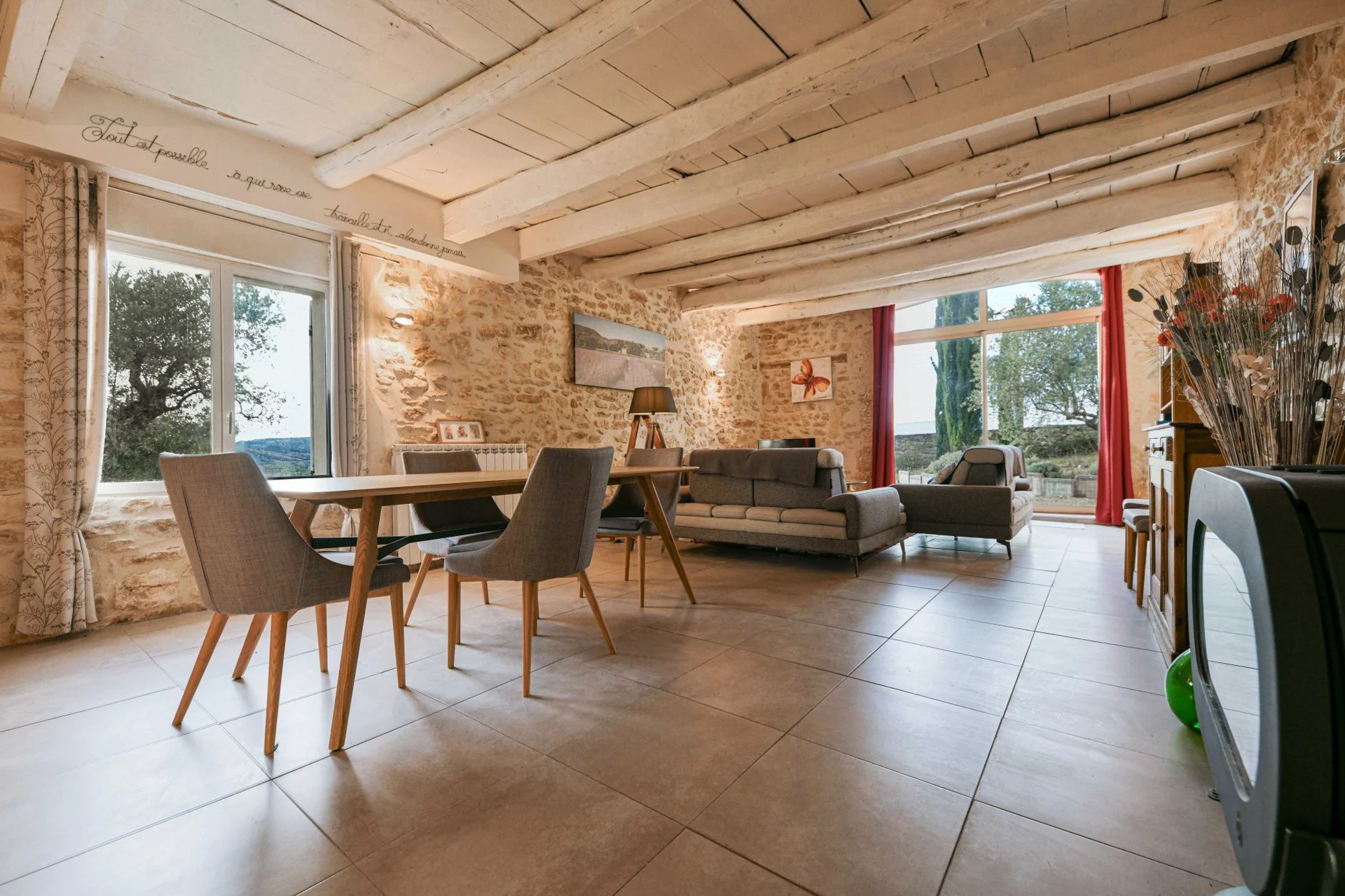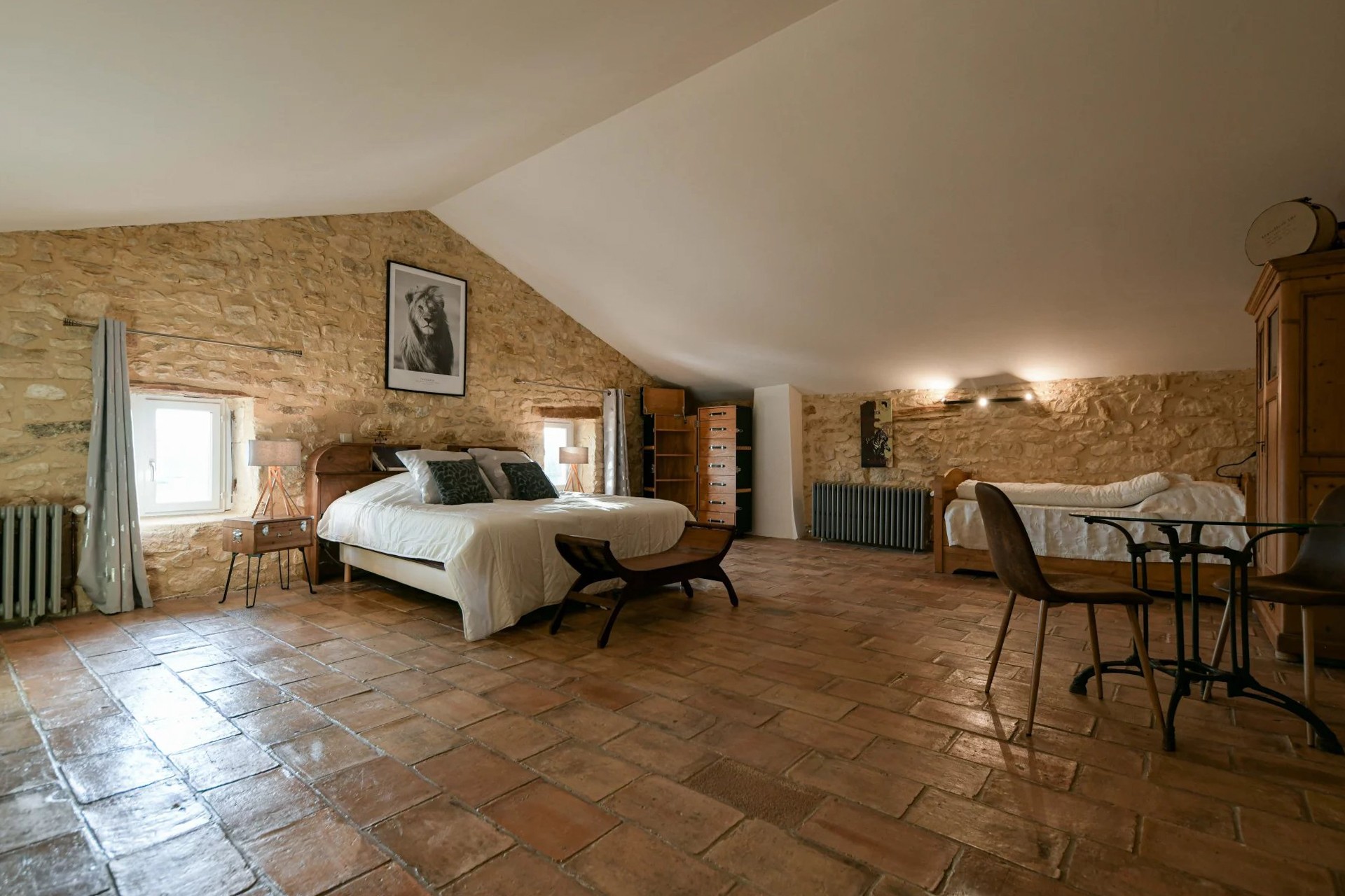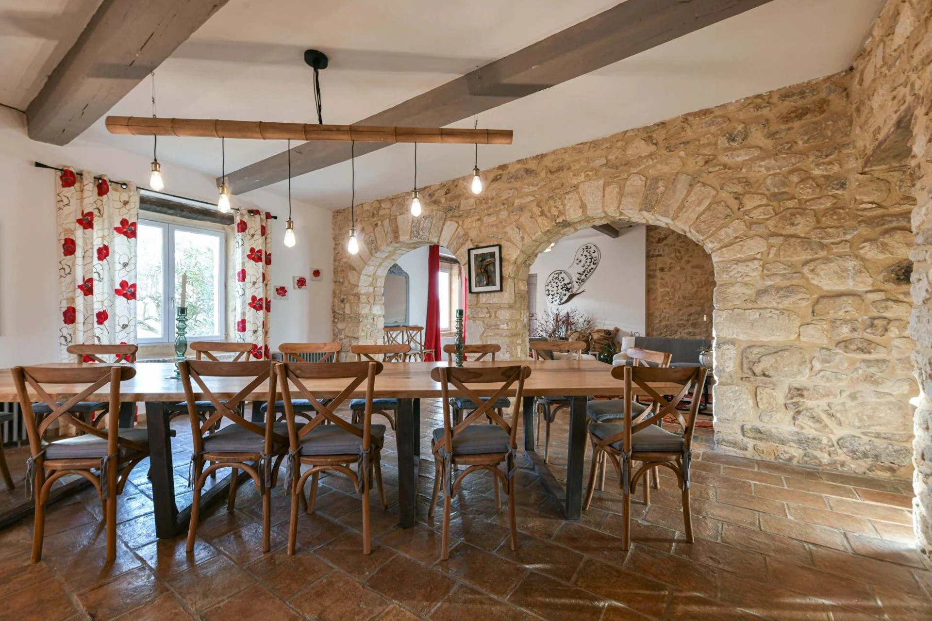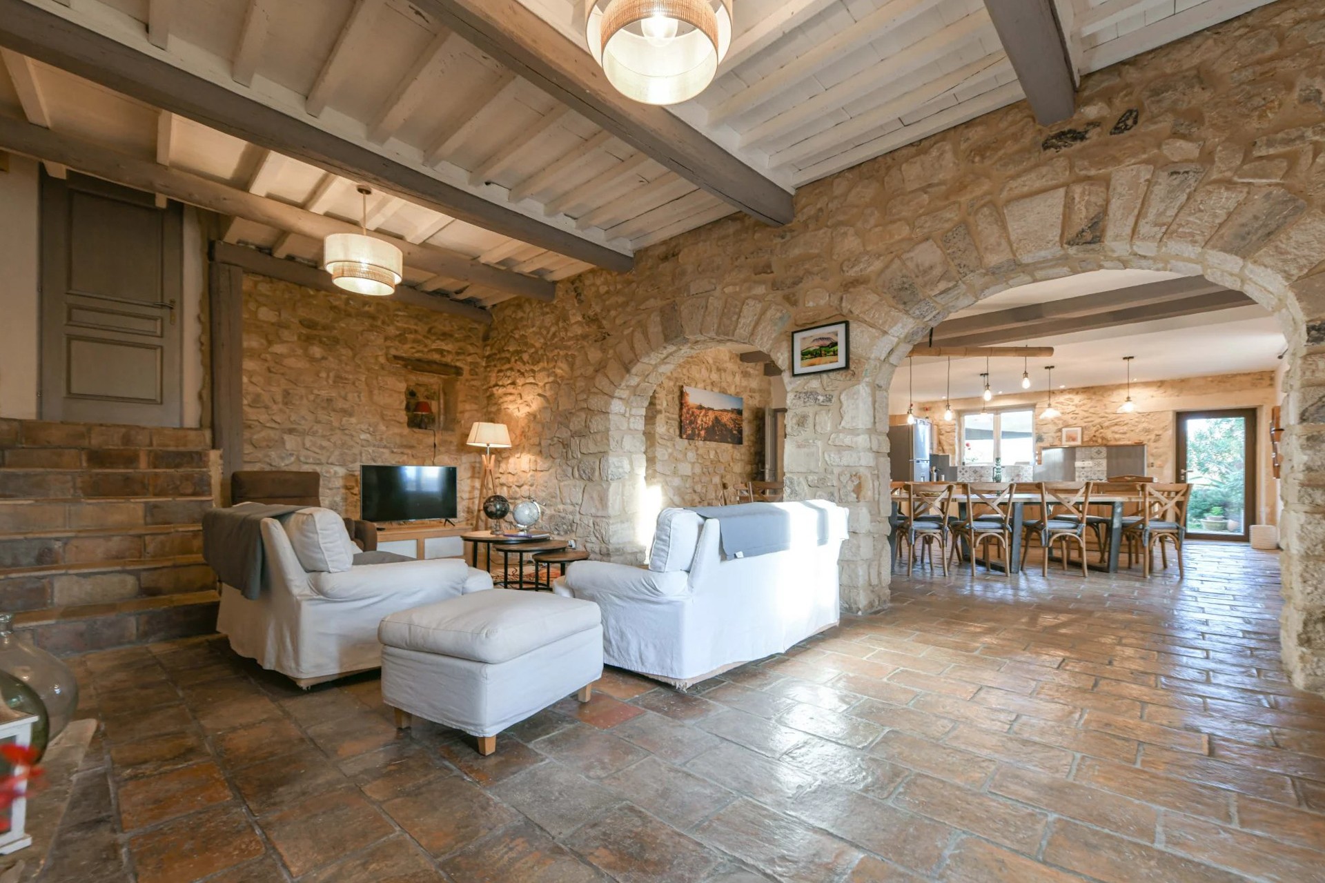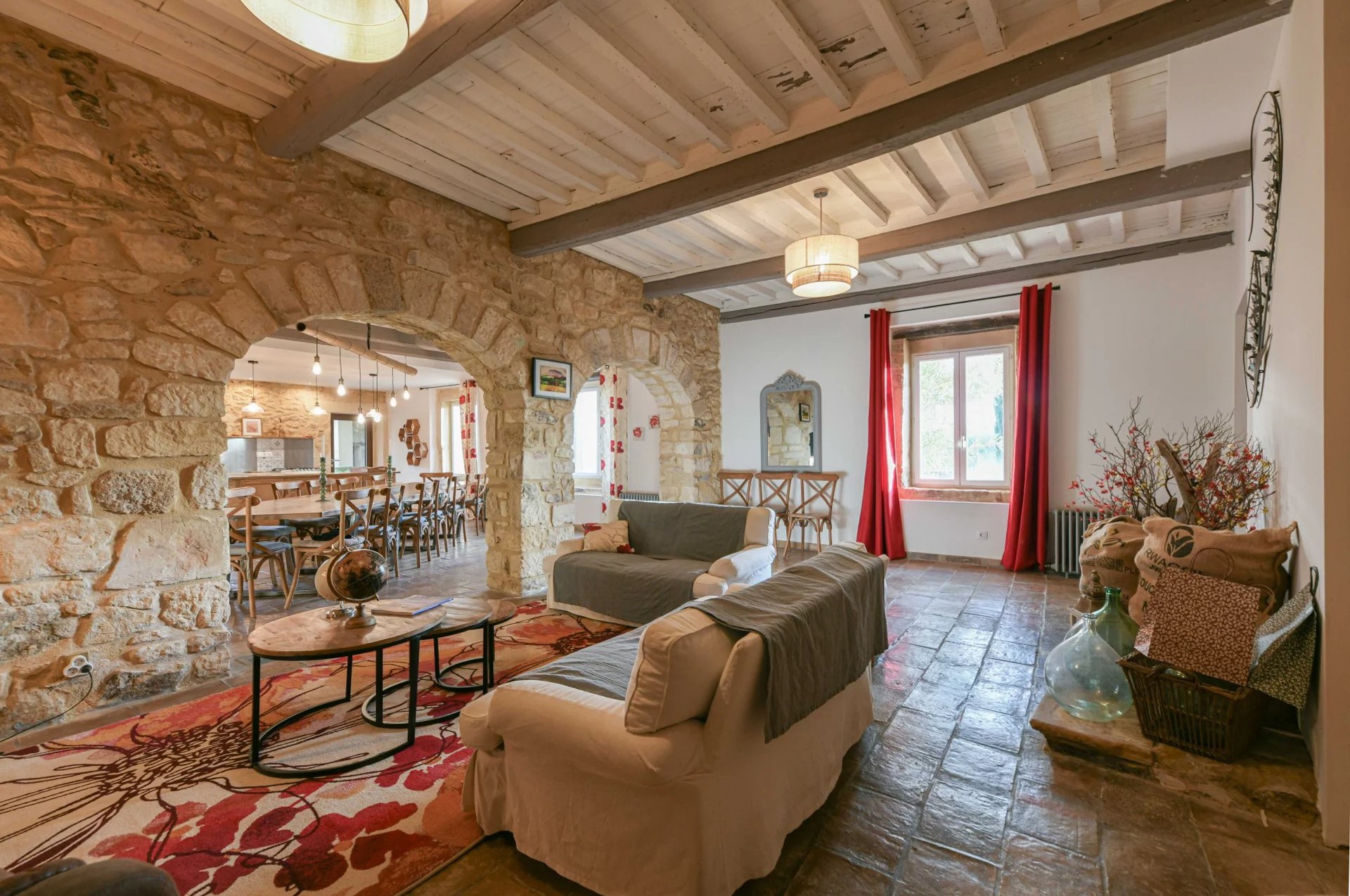 Eiendommen er restaurert med historiske materialer og utstyrt med moderne fasiliteter. To sentrale varmesystemer (gass + varmepumpe) og reversibel klimaanlegg i soverommene i hovedbygningen (unntatt ett) sikrer komfortabel bolig. Gjestehuset har gassoppvarming og peis. Det finnes også en privat brønn på eiendommen.