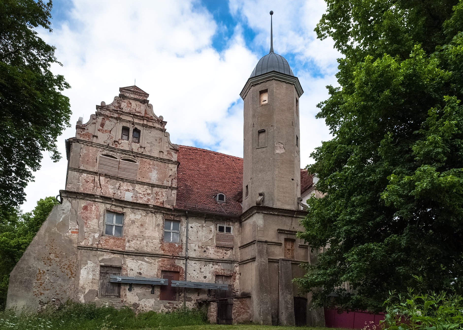 Das Herrenhaus in Quilow gehört zu den ältesten Gutshäusern in Mecklenburg. Das Bild zeigt das historische Renaissace-Gebäude im Jahr 2010 vor der Sanierung.