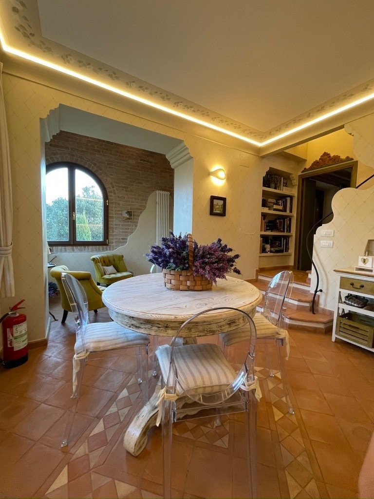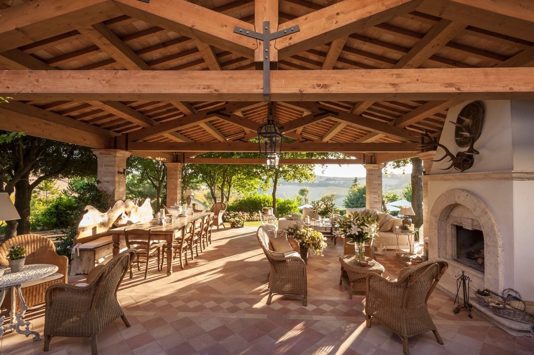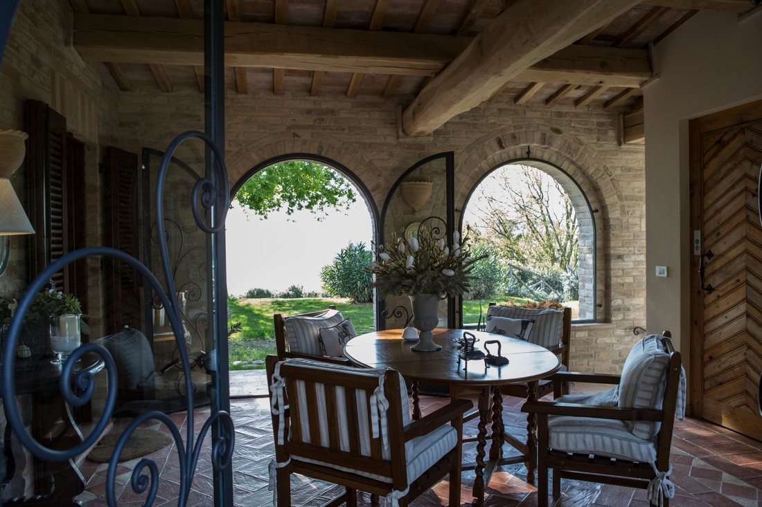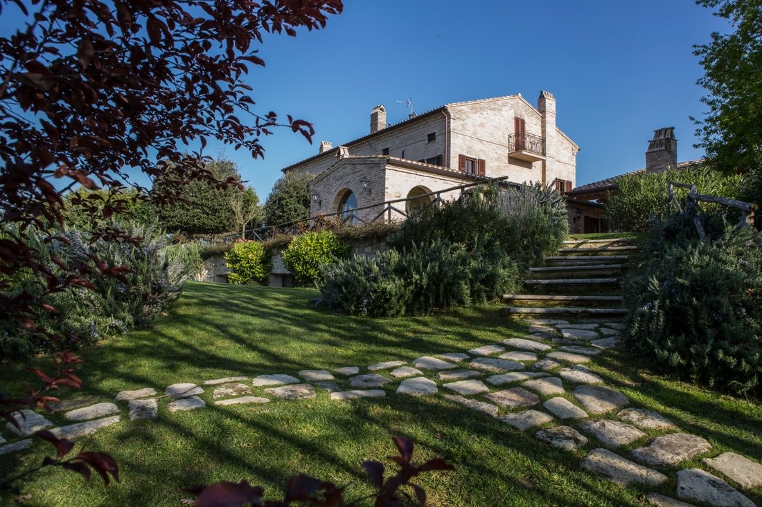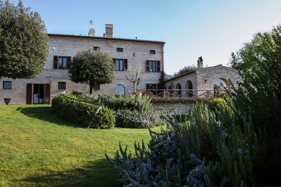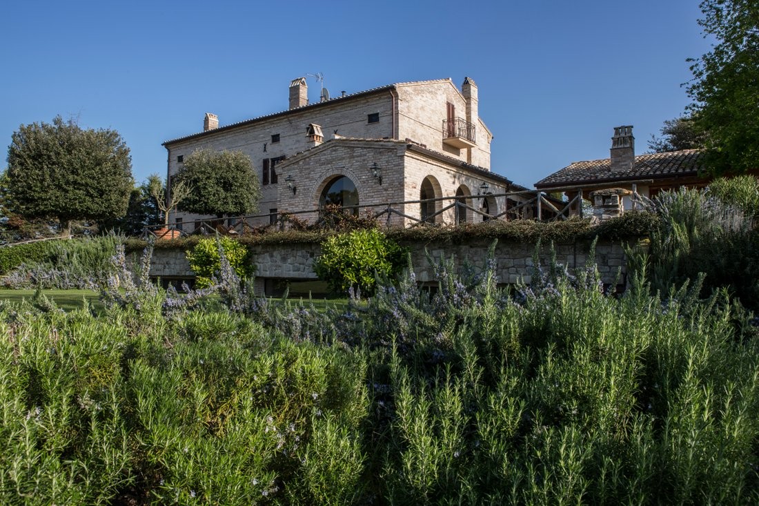 Huvudbyggnaden är redan renoverad. Den sträcker sig över fem våningar och omfattar sex sovrum, sex badrum, flera mottagnings- och sällskapsutrymmen, två fullt utrustade kök, innergård, varuhiss, garage under marknivå, vinkällare och bastu. Utsikten sträcker sig över Marche-landskapet till taken i Fermo. Utomhus: privat olivlund, anlagda trädgårdar med paviljong, terrasser, utomhuskök, sten-grill, jacuzzi och infinitypool.