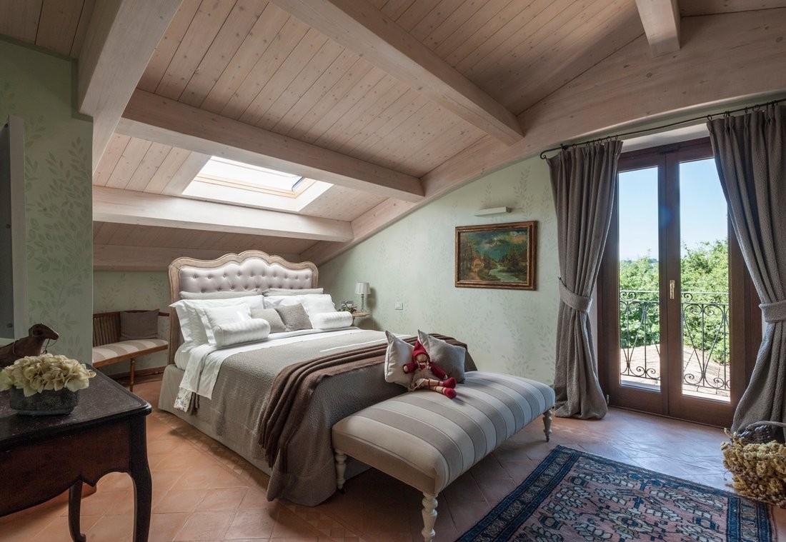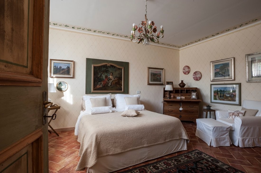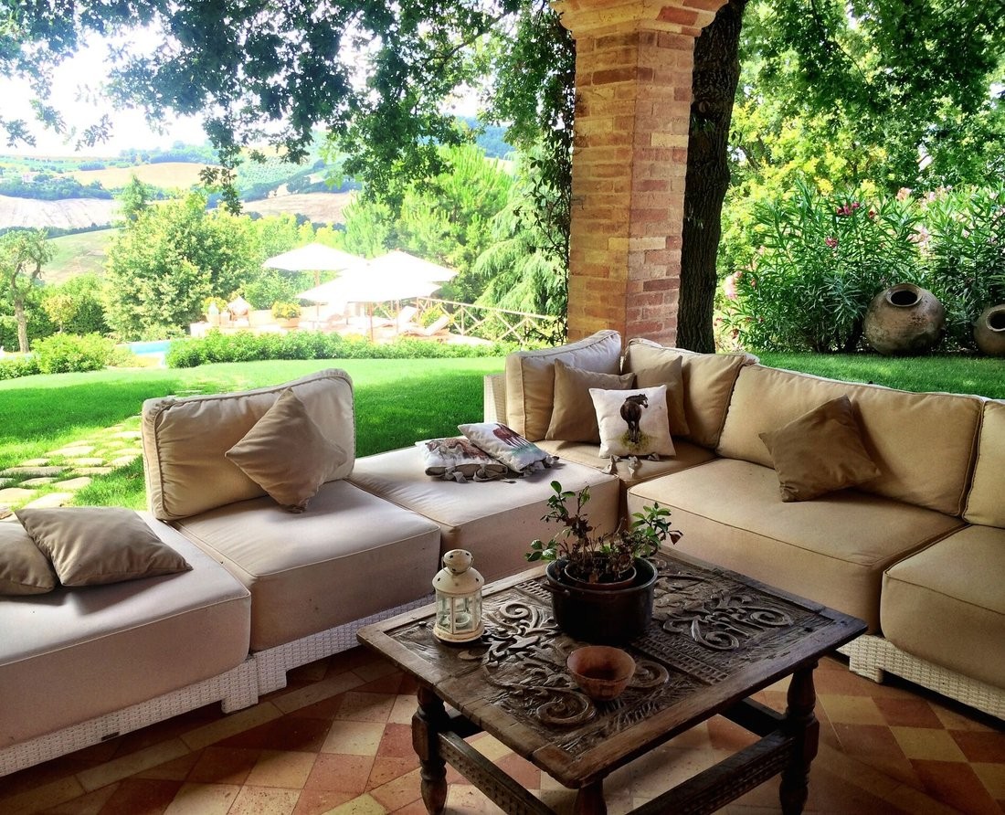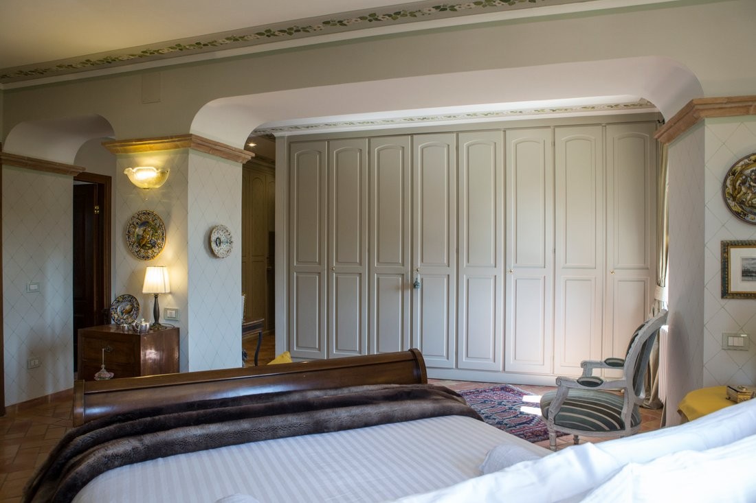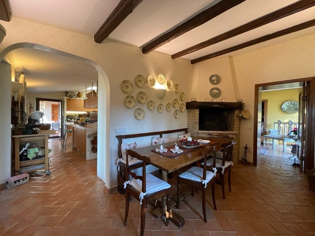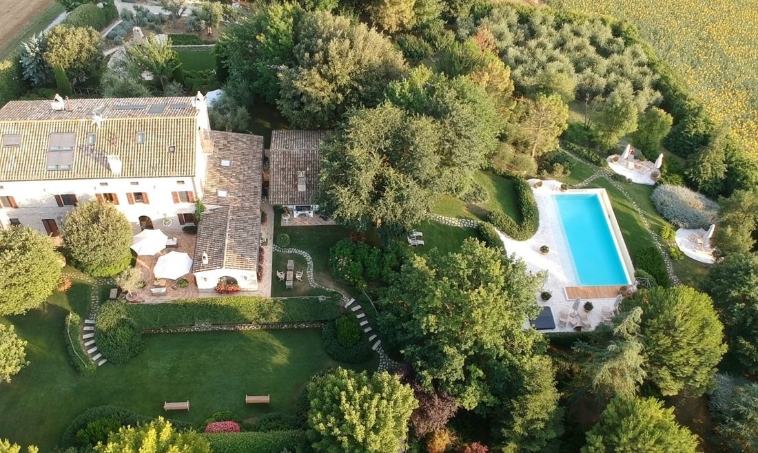 Huvudbyggnaden är redan renoverad. Den sträcker sig över fem våningar och omfattar sex sovrum, sex badrum, flera mottagnings- och sällskapsutrymmen, två fullt utrustade kök, innergård, varuhiss, garage under marknivå, vinkällare och bastu. Utsikten sträcker sig över Marche-landskapet till taken i Fermo. Utomhus: privat olivlund, anlagda trädgårdar med paviljong, terrasser, utomhuskök, sten-grill, jacuzzi och infinitypool.
