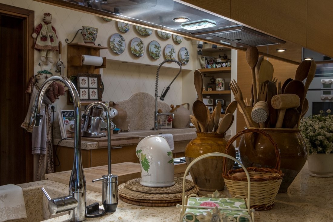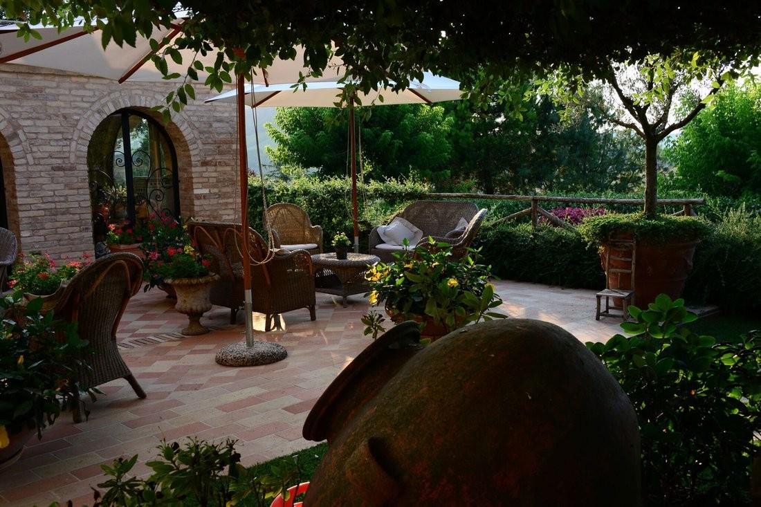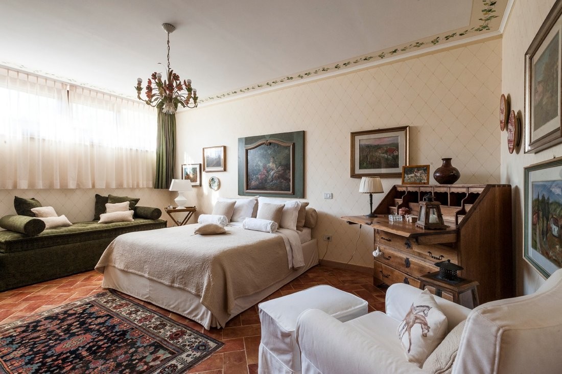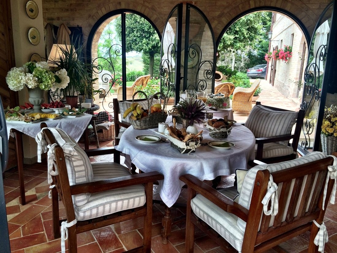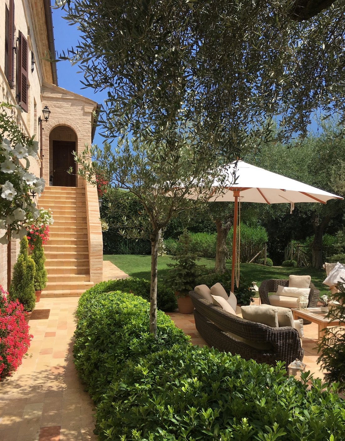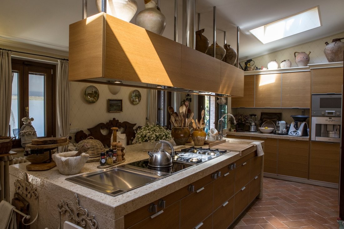 Huvudbyggnaden är redan renoverad. Den sträcker sig över fem våningar och omfattar sex sovrum, sex badrum, flera mottagnings- och sällskapsutrymmen, två fullt utrustade kök, innergård, varuhiss, garage under marknivå, vinkällare och bastu. Utsikten sträcker sig över Marche-landskapet till taken i Fermo. Utomhus: privat olivlund, anlagda trädgårdar med paviljong, terrasser, utomhuskök, sten-grill, jacuzzi och infinitypool.